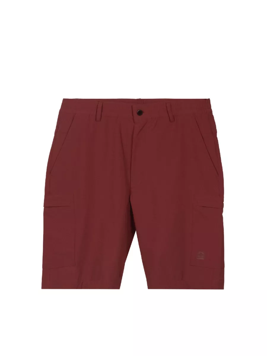 Een functionele cargo short van Baileys in een warme bordeauxbruin tint die casual en stoer oogt. Model 611058 heeft een relaxte pasvorm met een tailleband met riemlussen en een knopsluiting. Aan beide zijkanten bevinden zich cargozakken met een klep, naast de reguliere steekzakken aan de voorzijde, wat de short praktisch maakt voor een actieve dag. Een subtiel logopatch op het rechterbeen maakt het plaatje af. De stof van nylon met elastaan is licht, stevig en goed rekbaar, wat zorgt voor een vrije beweging en een sneldrogend materiaal dat ook buiten gebruik aangenaam draagt. Combineer hem met een effen T-shirt of polo voor een complete zomerlook.