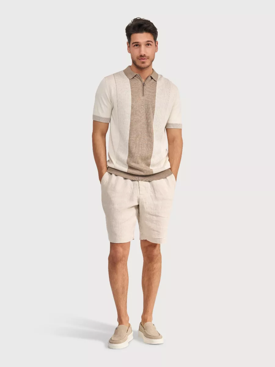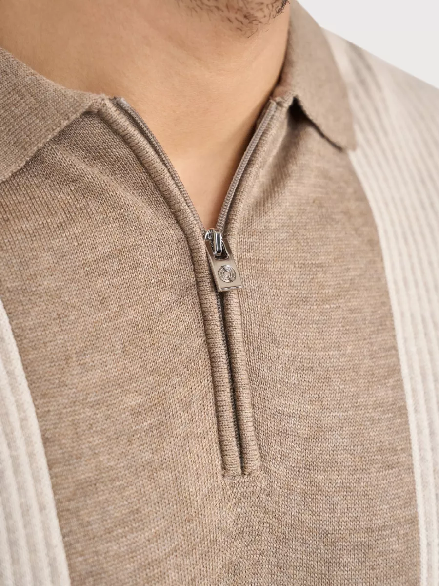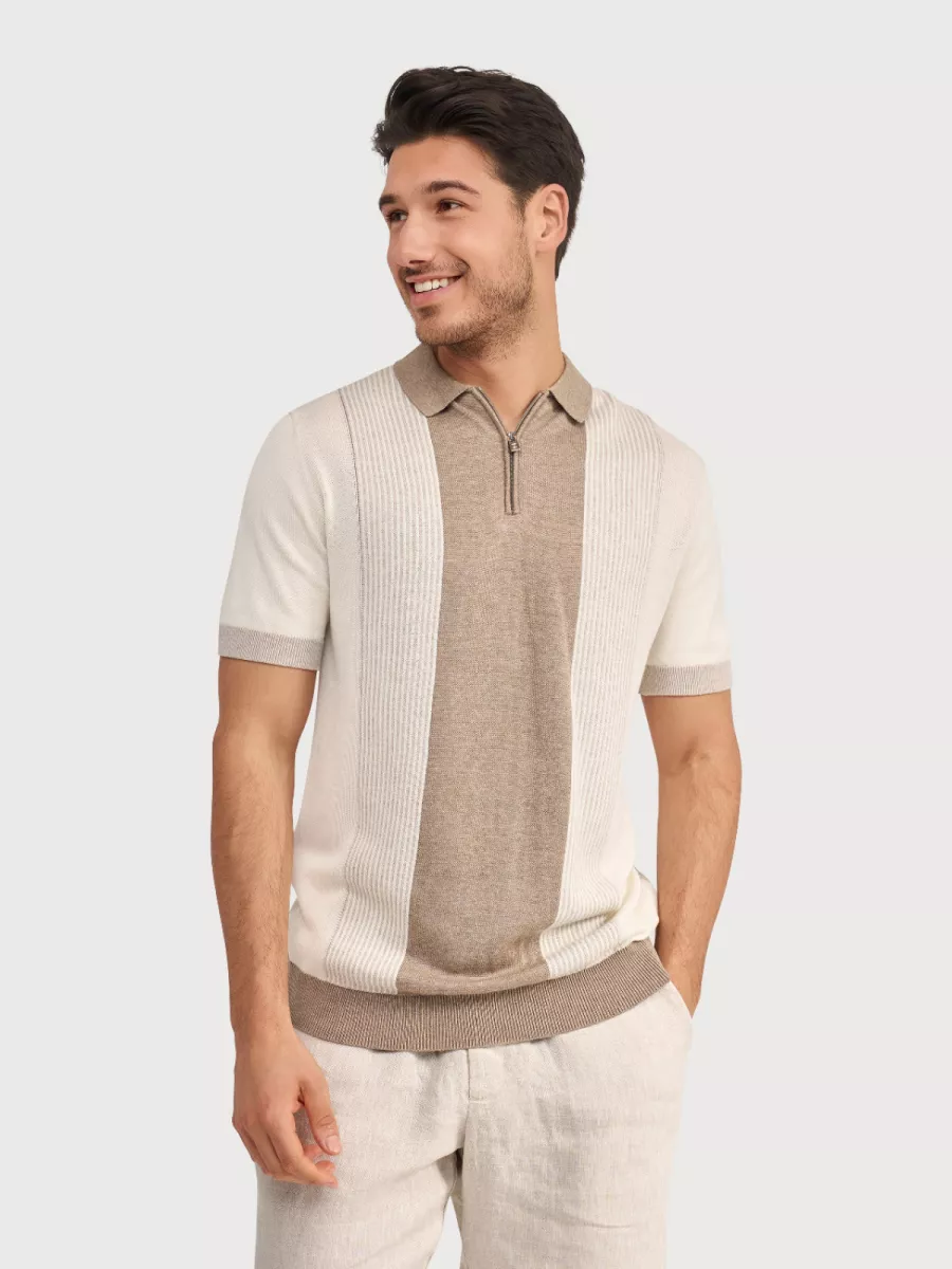 • Beige polo met verticale banen