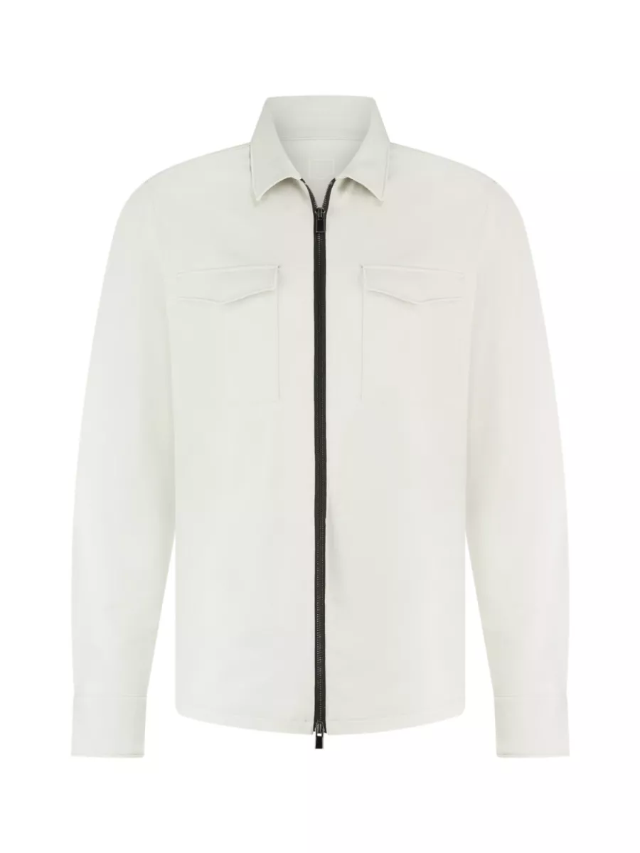 Een strakke, cleane overshirt van Born with Appetite in een licht gebroken wit met een gladde, soepele stof die het stuk een frisse, minimalistische uitstraling geeft. Model BWA26114BO10 heeft een klassieke kraag, een doorgaande rits als sluiting en twee ruime borstzakken met klep. De manchetten zijn netjes afgewerkt met een knoop. De lichte kleur maakt dit overshirt uitstekend combineerbaar met donkerdere broeken voor een sterk kleurcontrast, of draag hem over een wit T-shirt voor een toon-op-toon look. De stof van nylon met elastaan is licht, soepel en rekbaar, kreukelt nauwelijks en behoudt zijn vorm de hele dag.