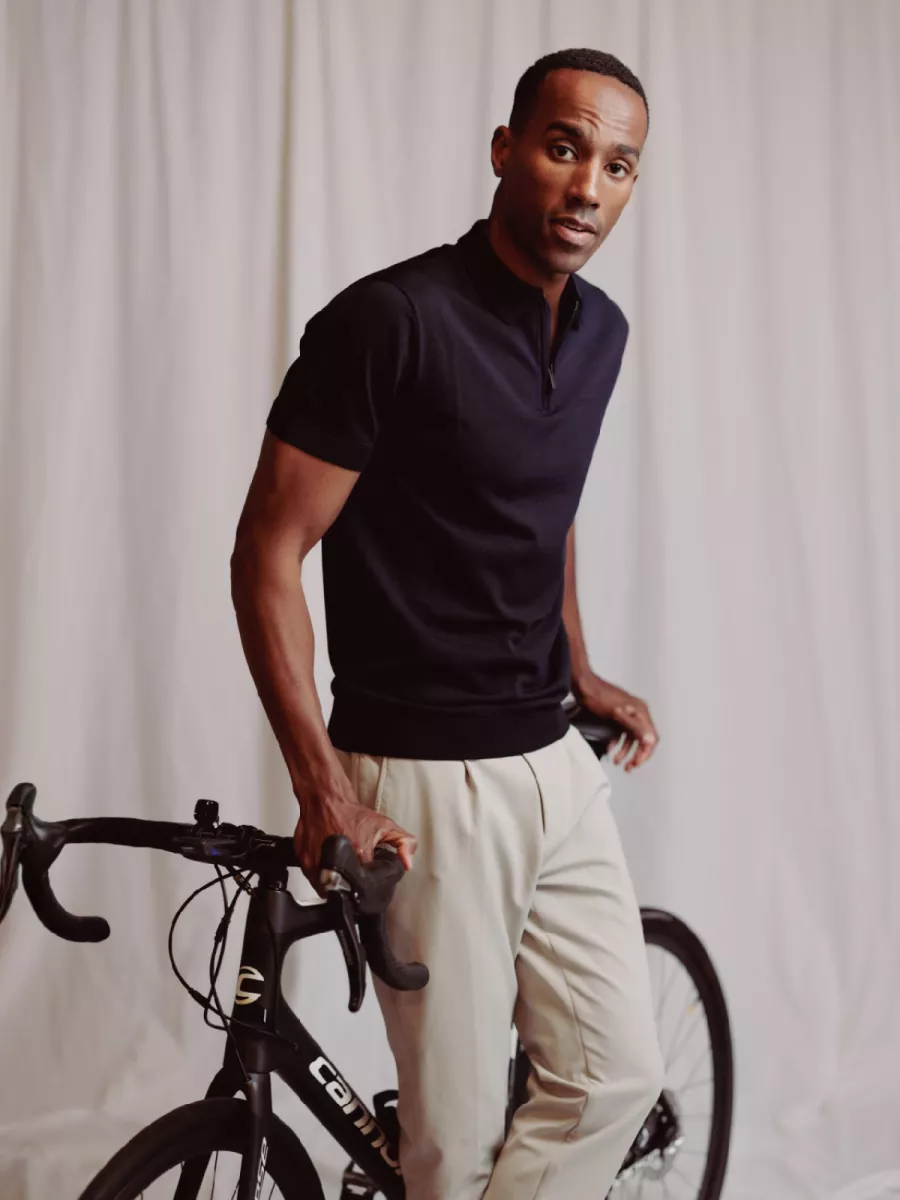 - Regular fit-pasvorm met klassieke polokraag en kwart-rits als sluiting