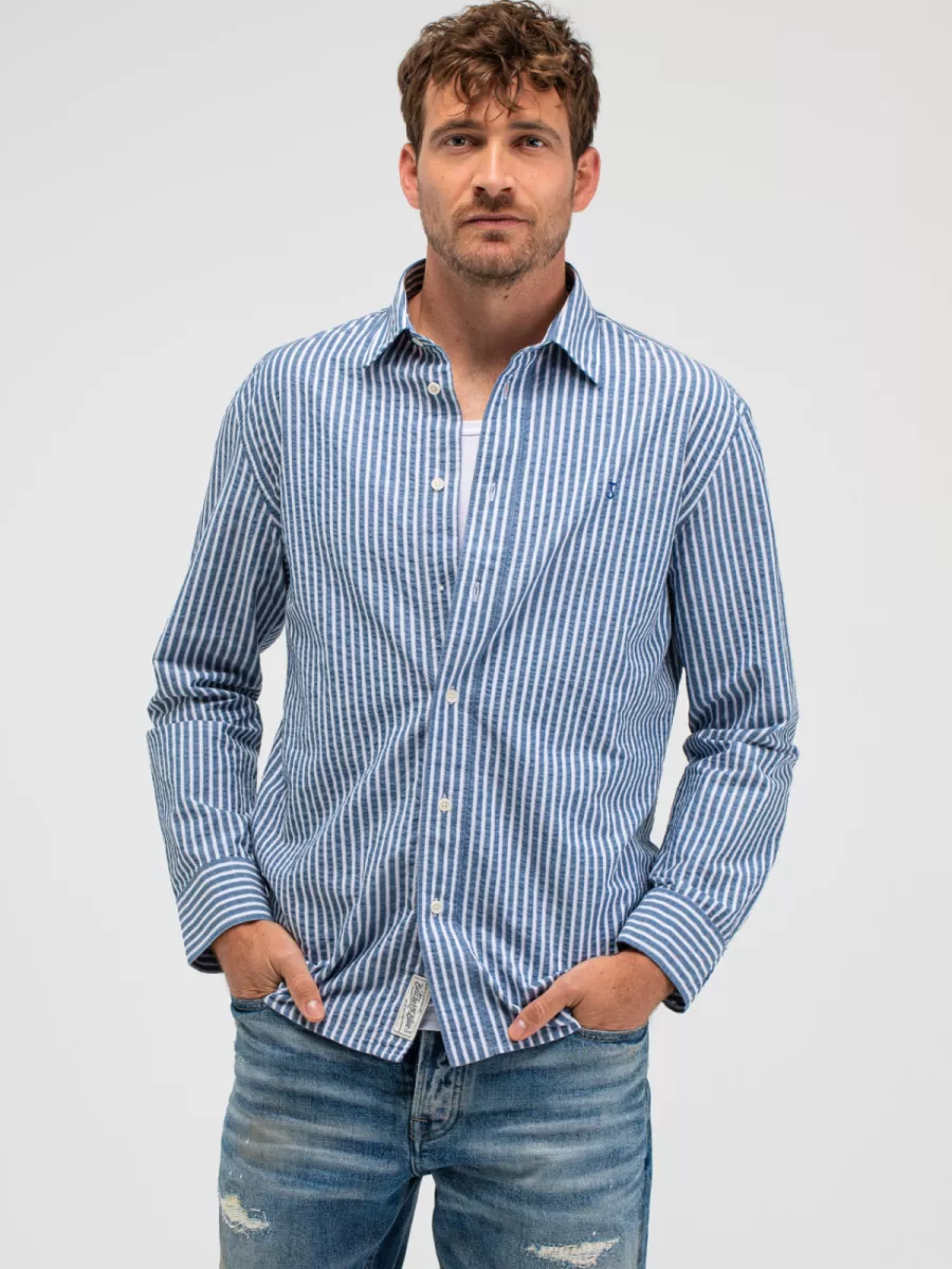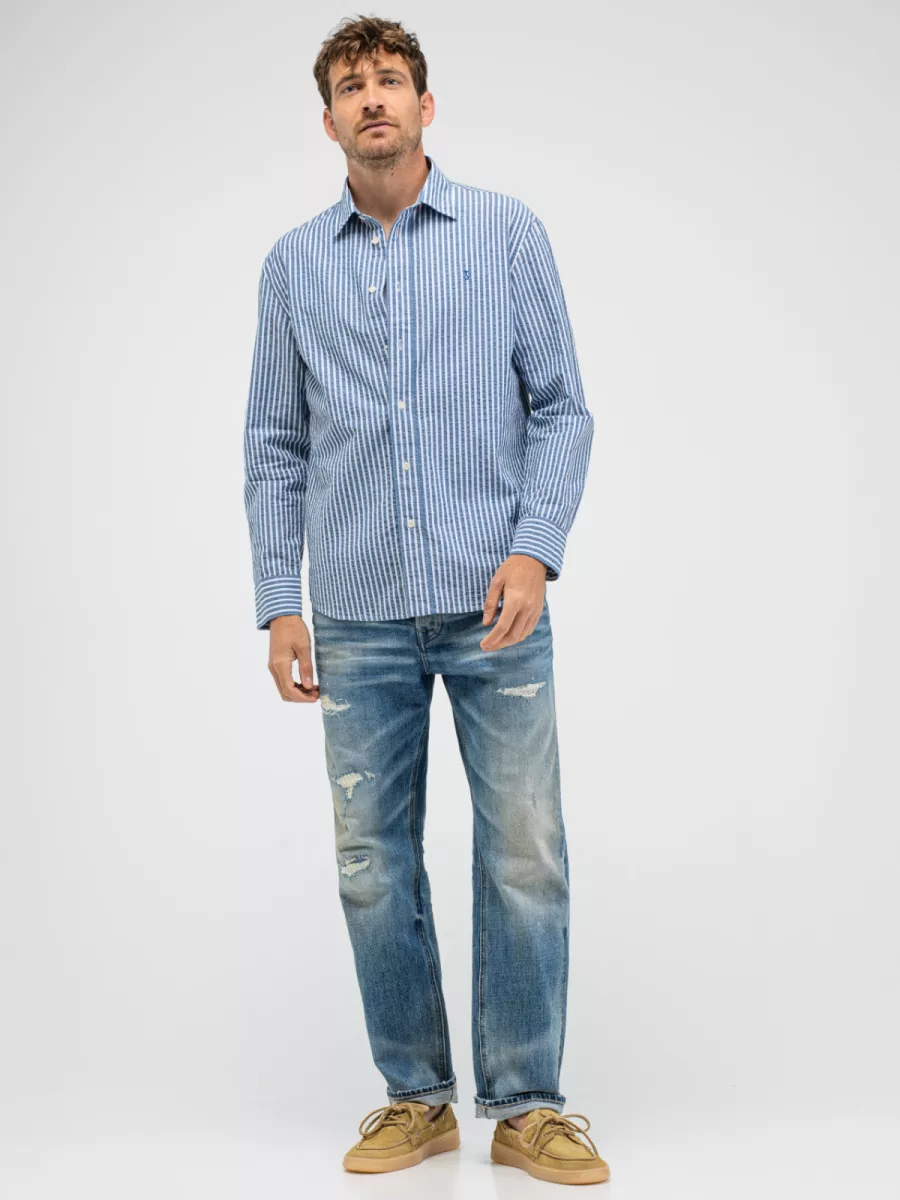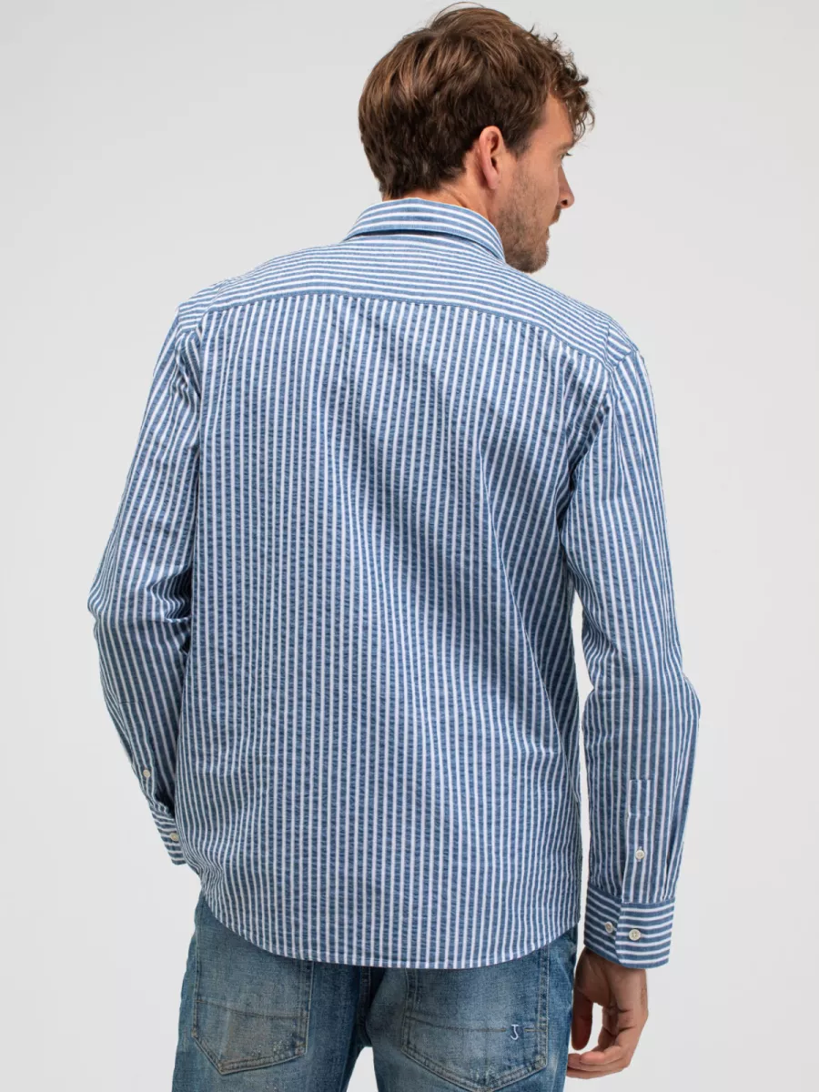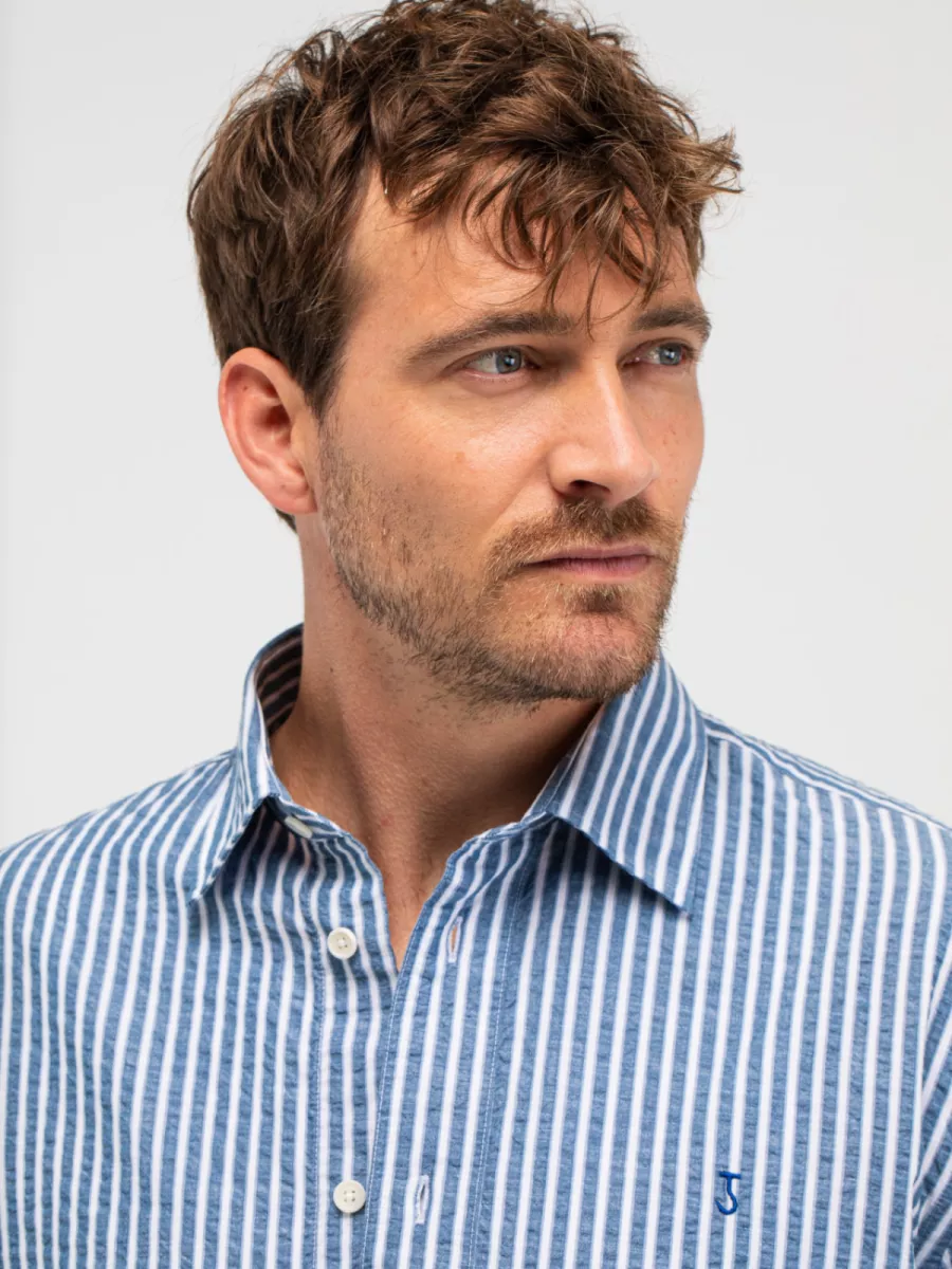 - Regular fit-pasvorm met Kent-kraag en seersucker structuur