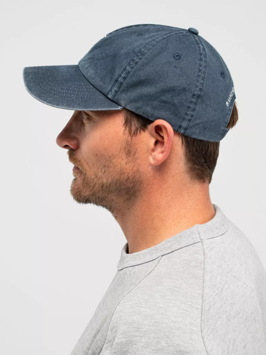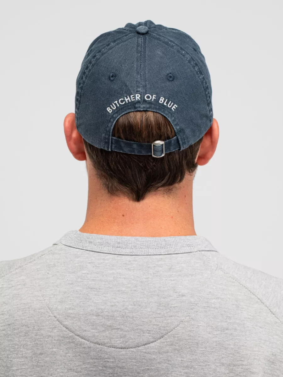 Een sixpanel pet van Butcher of Blue in een donkerblauwe, gewassen denim-achtige tint die een authentiek, vintage karakter heeft. Model M2619003 heeft een ongestructureerde, soepele bol en een gebogen klep. De gewassen behandeling van de stof geeft de pet een used look met natuurlijke kleurvariaties die het stuk een eigentijds, nonchalant karakter geven. Op de klep is het haakmotief van het merk geborduurd in een subtiele lichte tint. Aan de achterkant bevindt zich een verstelbare sluiting. De stof van katoen is licht en prettig in gebruik. Een pet met karakter die goed combineert met een jeans look of een casual outfit in donkerdere tinten.