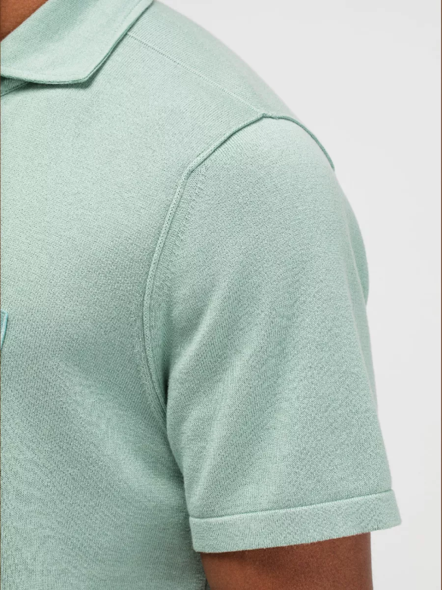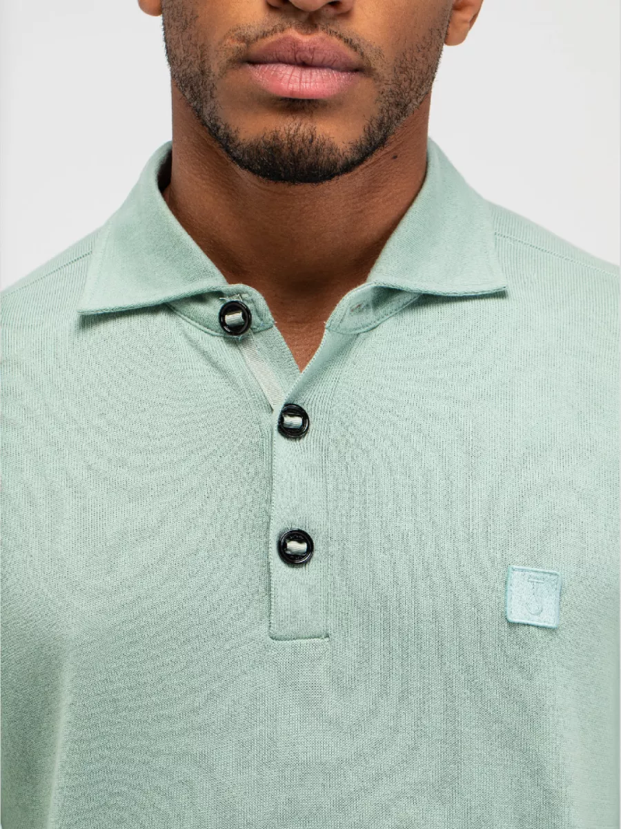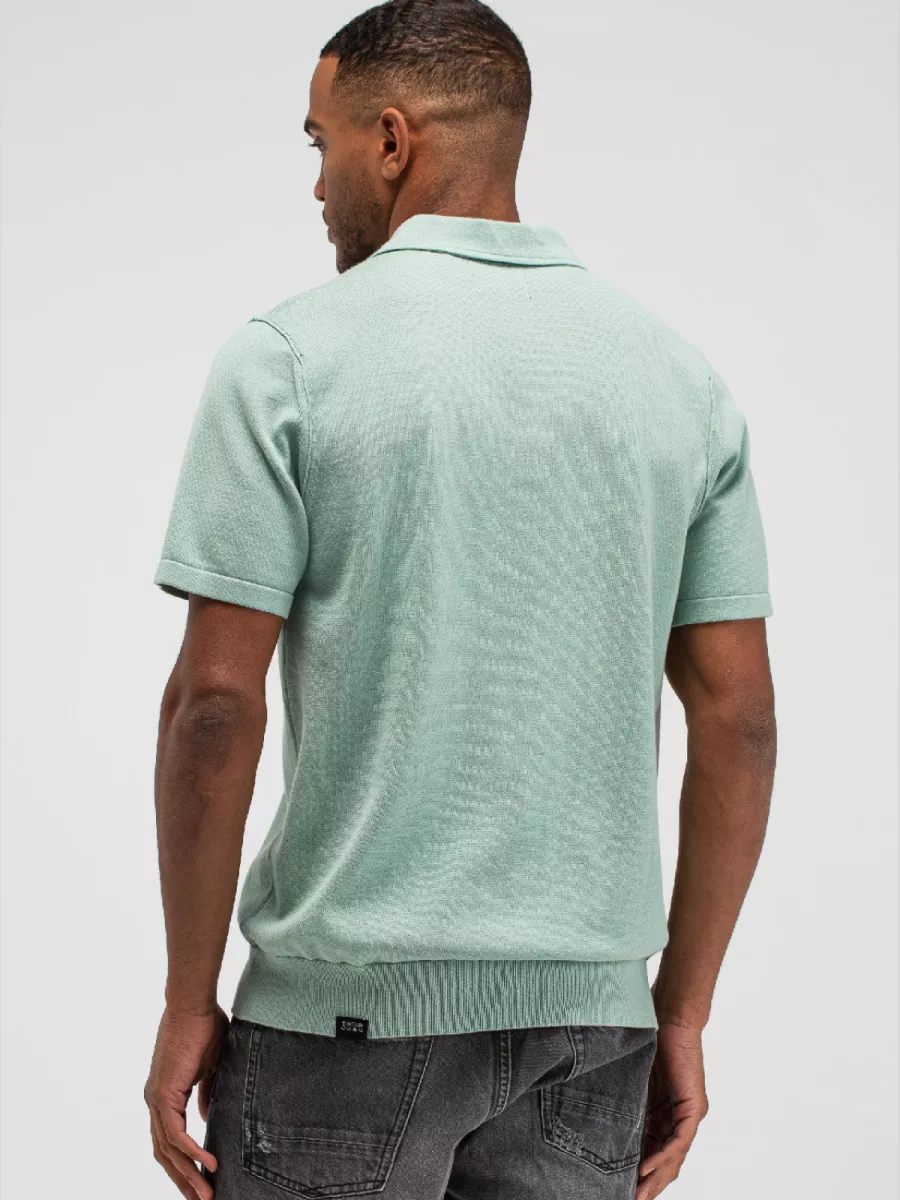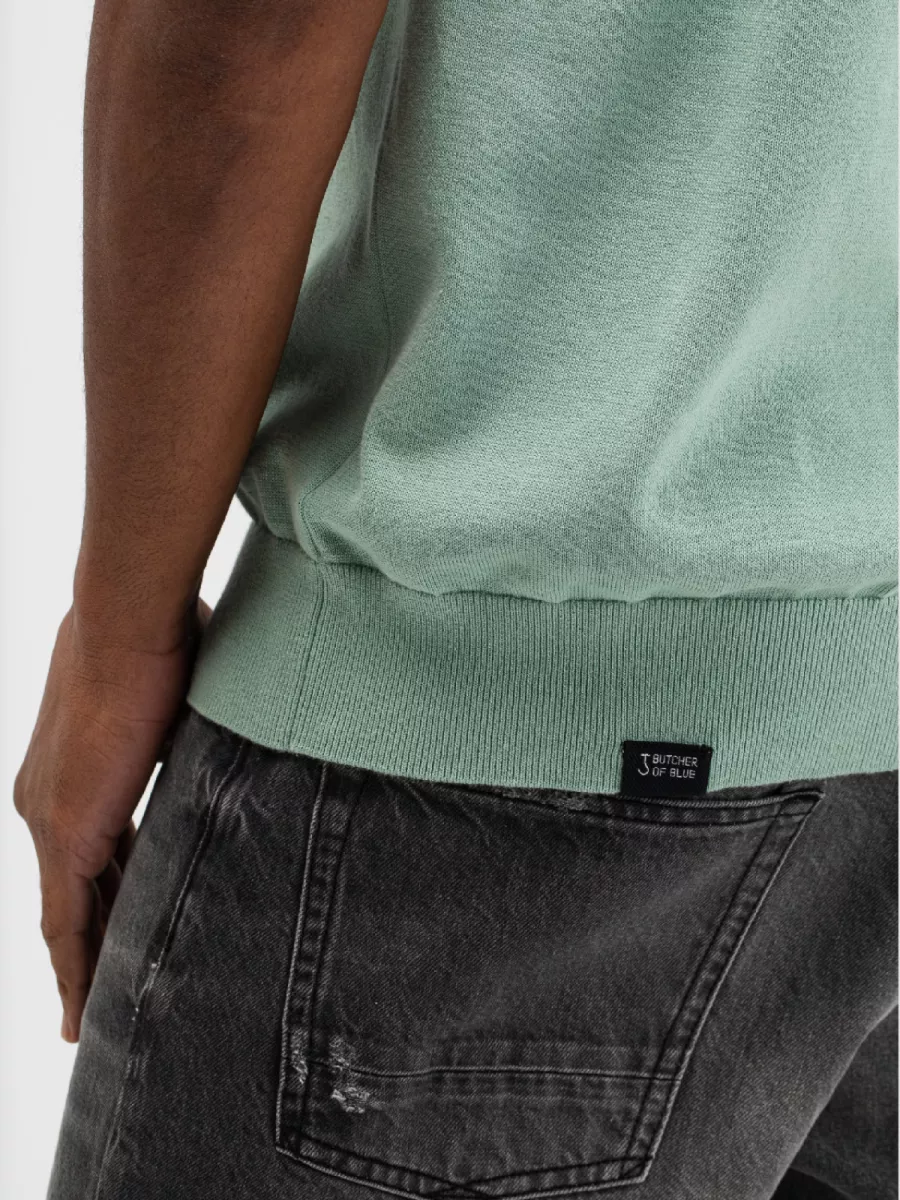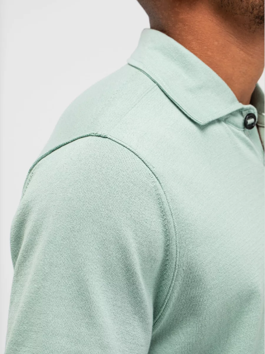 Deze groene polo van Butcher of Blue heeft een mintgroene basiskleur met een fijn breisel. Het merk staat bekend om tijdloze stukken met oog voor detail. De polo heeft een klassieke kraag en een knoopsluiting met drie knopen. Op de borst zie je een klein vierkant logo in dezelfde kleur als de polo. De korte mouwen zijn afgewerkt met geribbelde boorden. De zoom heeft eveneens een geribbelde afwerking. Je draagt deze polo gemakkelijk bij verschillende gelegenheden, van een casual afspraak tot een ontspannen weekend. De mintgroene kleur is fris en combineert goed met een lichte pantalon of denim. Het biologisch katoen voelt prettig aan en biedt voldoende ademend vermogen voor de warmere maanden.