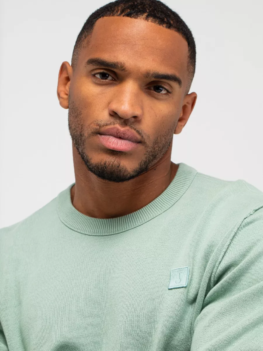 Deze groene trui van Butcher of Blue heeft een fris mintgroene kleur die je garderobe aangenaam verrijkt. Het merk staat bekend om tijdloze basics met een casual twist, voor mannen die waarde hechten aan kwaliteit en draagcomfort. De ronde hals en de geribbelde boorden aan de hals, manchetten en zoom zorgen voor een klassieke pasvorm die goed zit. Op de borst vind je een klein vierkant merkembleem in dezelfde kleur als de trui. Het fijne breisel geeft de sweater een strakke uitstraling die je eenvoudig combineert met een spijkerbroek of chino. Je draagt dit kledingstuk in je vrije tijd, tijdens een casual afspraak of gewoon thuis. Het biologisch katoen voelt zacht aan op de huid en zorgt voor ademend draagcomfort.