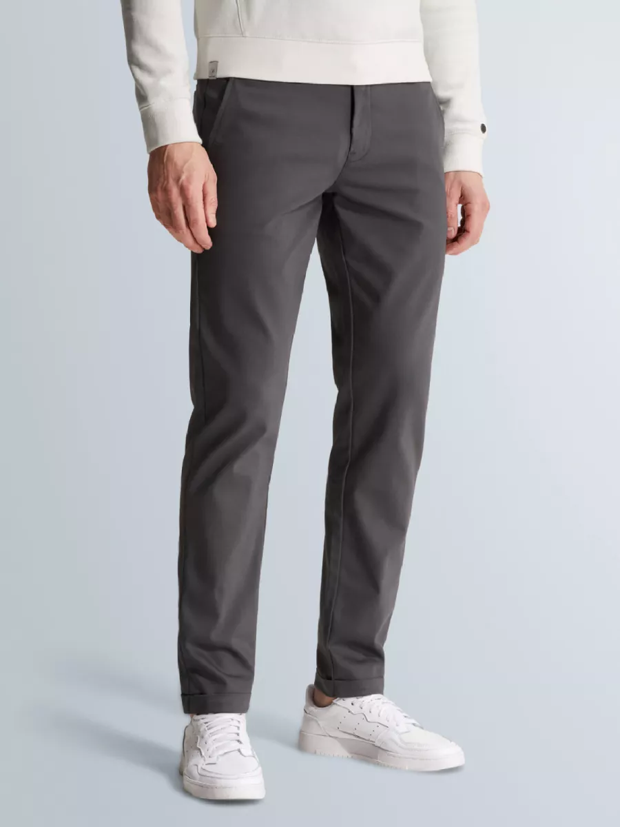 Deze donkergrijze pantalon is de perfecte keuze voor een zakelijke of smart-casual outfit met een moderne twist. De diepe grijstint geeft de broek een krachtige uitstraling die goed samengaat met lichtere kleuren in de rest van je kleding. Het model heeft een gestroomlijnd silhouet dat zorgt voor een moderne en zelfverzekerde look. Dankzij de elastische eigenschappen in de stof vormt de pantalon zich prettig naar je lichaam zonder zijn vorm te verliezen. Details zoals de zorgvuldig geplaatste zakken en de hoogwaardige stiksels onderstrepen de kwaliteit van dit item.
