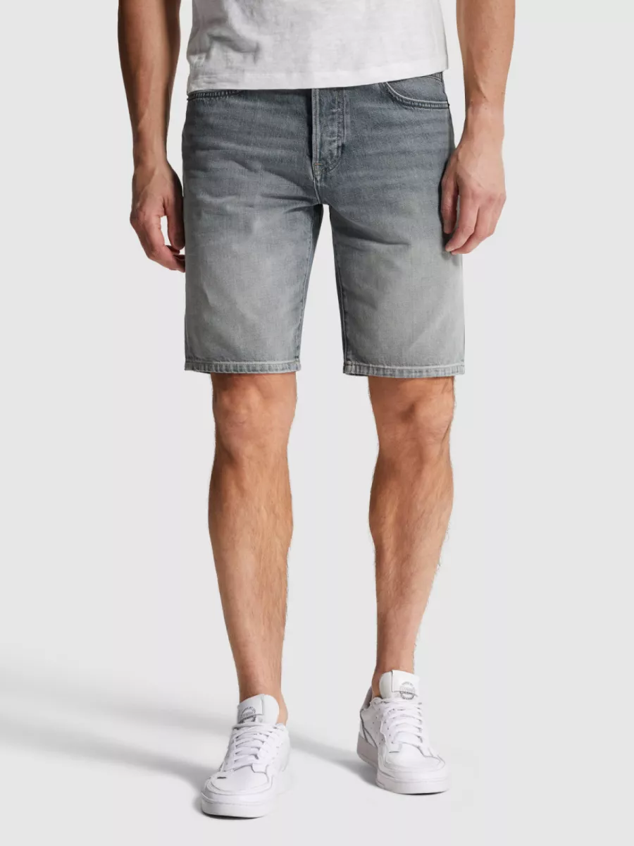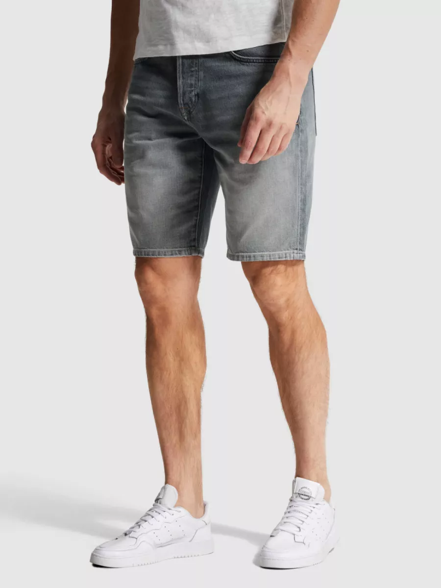 Deze grijze short van Cast Iron is gemaakt van denim met een lichte wassing. De short heeft een klassieke vijfzakkenindeling met steekzakken aan de voorkant en achterzakken. De taille sluit met knoopsluiting en heeft riemlussen. De grijze wassing heeft subtiele slijtage-effecten die de short een relaxte uitstraling geven. Je draagt deze short gemakkelijk tijdens warme dagen, in je vrije tijd of op vakantie. De mix van katoen en gerecycled katoen voelt comfortabel aan en biedt voldoende bewegingsvrijheid.