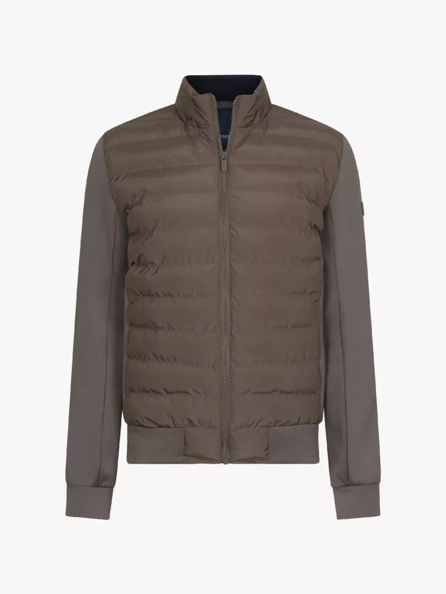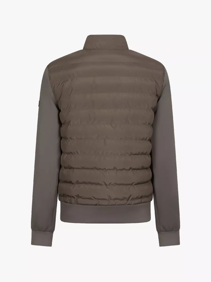 Deze taupe jas van Cavallaro heeft een eigentijdse combinatie van een gewatteerd voorpand en gebreide mouwen. Cavallaro richt zich op mannen die op zoek zijn naar verfijnde kledingstukken met Italiaanse invloeden. De jas heeft een staande kraag en sluit met een volledige ritssluiting. Het gewatteerde voorpand biedt warmte, terwijl de gebreide mouwen voor bewegingsvrijheid zorgen. De manchetten en zoom zijn voorzien van geribbelde boorden. Je draagt deze jas als tussenlaag of als buitenste laag tijdens de overgangsseizoenen. De taupe kleur is neutraal en gemakkelijk te combineren. Het polyester materiaal is licht van gewicht en heeft een soepele pasvorm.