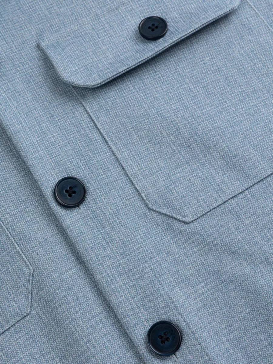 Deze overshirt van Cavallaro heeft een lichtblauwe structuurstof met een fijne geweven textuur en donkerblauwe knopen die mooi afsteken tegen de lichte kleur. De twee borstzakken met klepje geven hem een casual, functioneel karakter. De regular fit zorgt voor een ontspannen pasvorm die comfortabel over een T-shirt of dunne trui valt. Door de blending van polyester, viscose en elastaan heeft de stof een soepele val, beweegt hij mee met het lichaam en is hij gemakkelijk te onderhouden. Draag hem open als een lichte jas of dicht als een compleet stuk, gecombineerd met een jeans of chino.