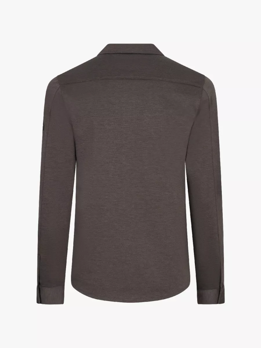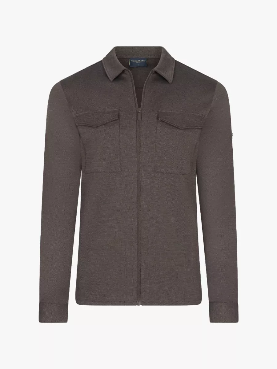 Dit bruine overshirt van Cavallaro heeft een structuur die doet denken aan piqué en het kledingstuk een interessante textuur geeft. Het Italiaanse merk staat bekend om verfijnde herenkleding met oog voor kwaliteit en detail. Het overshirt heeft een klassieke kraag en sluit met een volledige ritssluiting. Aan de voorkant zie je twee borstzakken met een puntige klep die voor een opvallend detail zorgen. De stof heeft een fijne structuur die het shirt extra dimensie geeft. Je draagt dit overshirt als tussenlaag over een t-shirt of als losse laag. De bruine kleur is warm en neutraal, geschikt voor verschillende seizoenen. Het materiaal voelt comfortabel aan en heeft voldoende stretch voor bewegingsvrijheid.