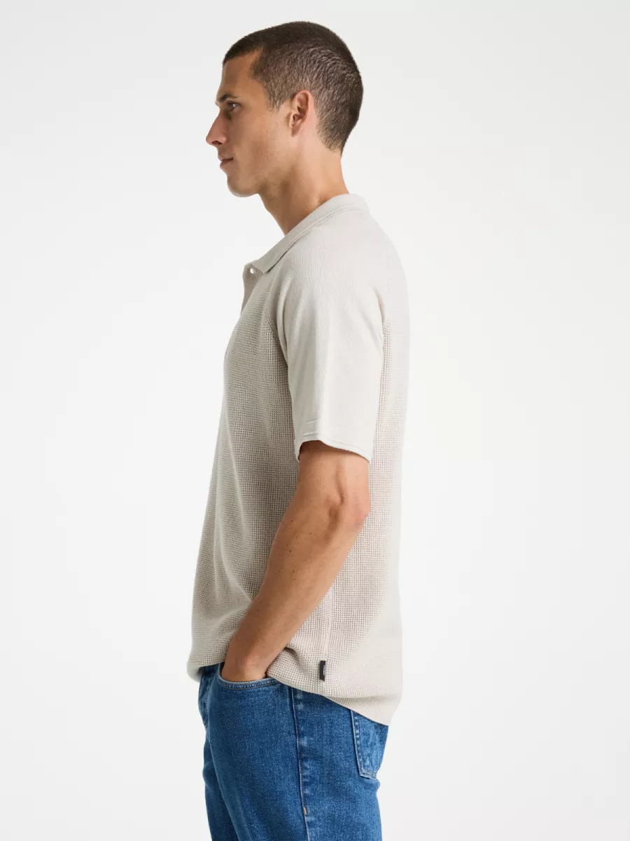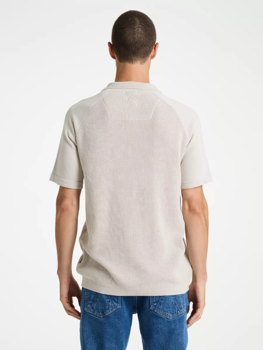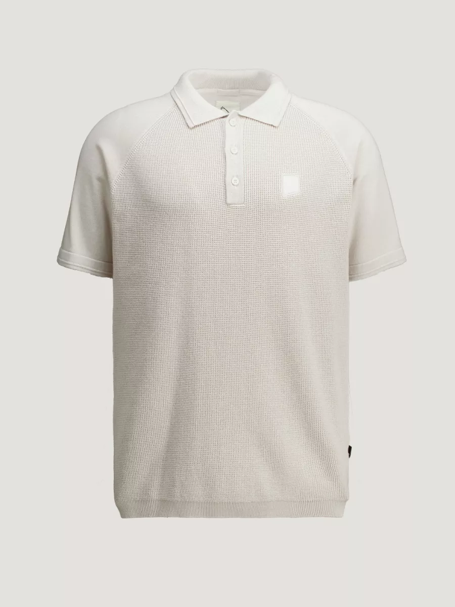 Deze beige polo van Chasin’ heeft een combinatie van gestructureerde en gladde breisels die het shirt een interessant patroon geven. De polo heeft een klassieke kraag en een korte knoopsluiting met drie knopen. Op de borst zie je een klein vierkant merkembleem. De korte mouwen zijn afgewerkt met geribbelde boorden, net als de zoom. Je draagt deze polo gemakkelijk bij verschillende gelegenheden, van casual tot iets netter. De beige kleur is neutraal en veelzijdig. Het katoen voelt comfortabel aan.
