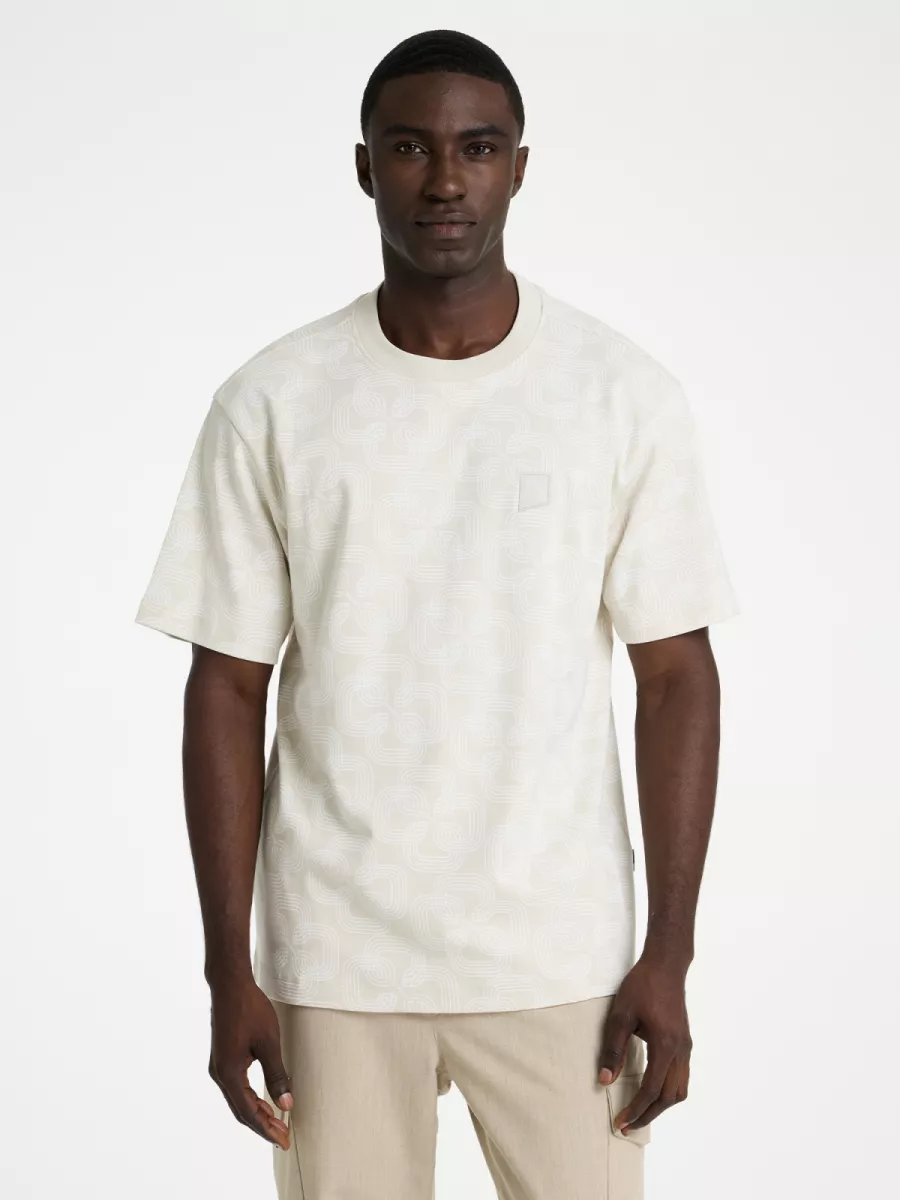 - Beige t-shirt met golvend patroon