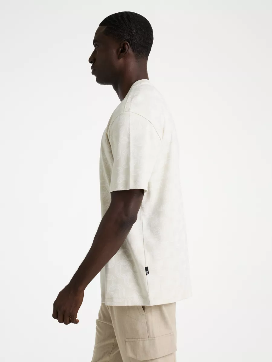 Dit beige t-shirt van Chasin’ heeft een all-over patroon met golvende lijnen die het shirt een interessante textuur geven. Het shirt heeft een klassieke ronde hals en korte mouwen. Op de borst zie je een klein vierkant merkembleem. Het patroon geeft het shirt extra dimensie en zorgt voor een speelse uitstraling. Je draagt dit t-shirt gemakkelijk bij verschillende gelegenheden. De beige kleur is neutraal en veelzijdig te combineren. Het katoen voelt comfortabel aan.