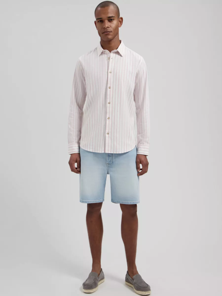 - Regular fit overhemd met korte mouwen, reverskraag en breed roze-wit streeppatroon