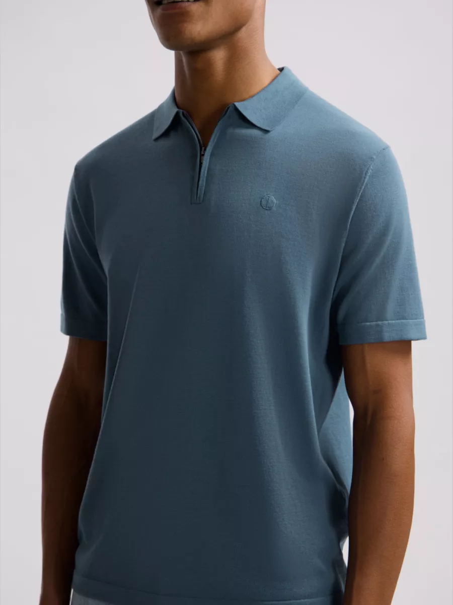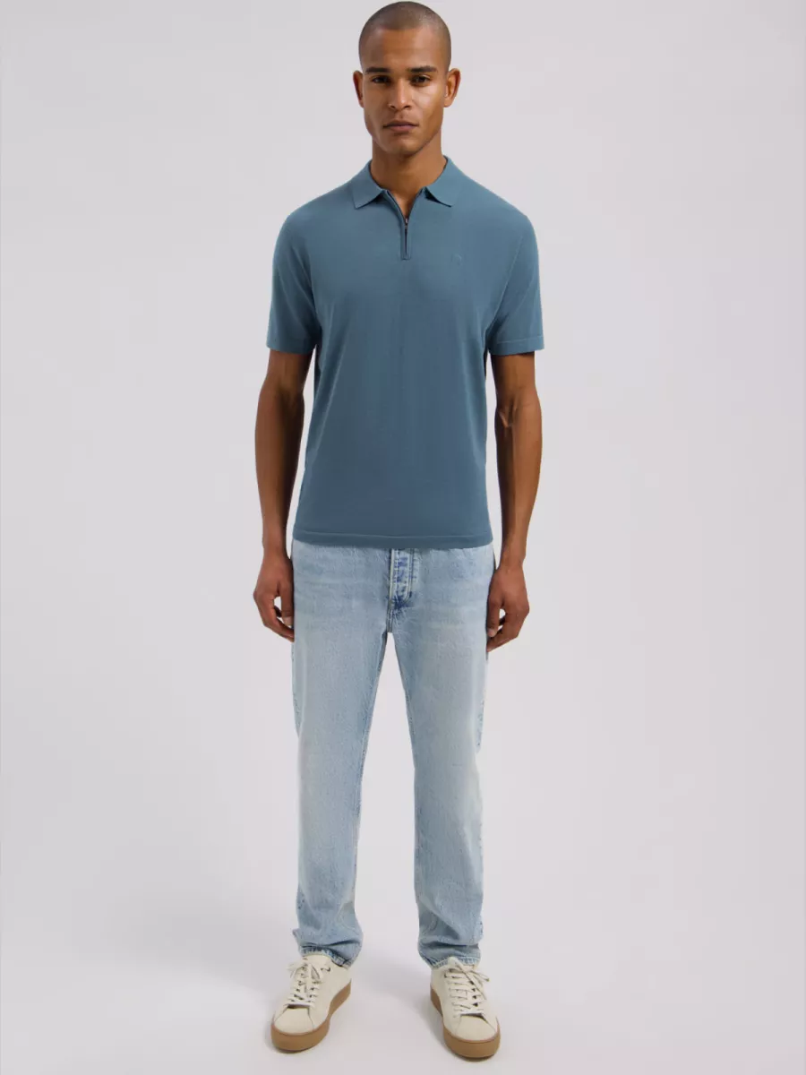 Deze blauwe heren polo heeft een klassieke polokraag en een halve rits als sluiting aan de voorkant, wat het een eigentijds detail geeft ten opzichte van een traditionele poloknoopjessluiting. Aan de rechterborst is het logo subtiel geborduurd in een toonvaste kleur. De polo heeft een strakke, rechte pasvorm met korte mouwen. De lichtblauwe kleur is fris en goed te combineren met zowel witte als donkere broeken. Gemaakt van 100% katoen, wat zorgt voor een aangenaam draaggevoel op warme dagen. Een herenpolo die past bij een casual of smart casual gelegenheid.