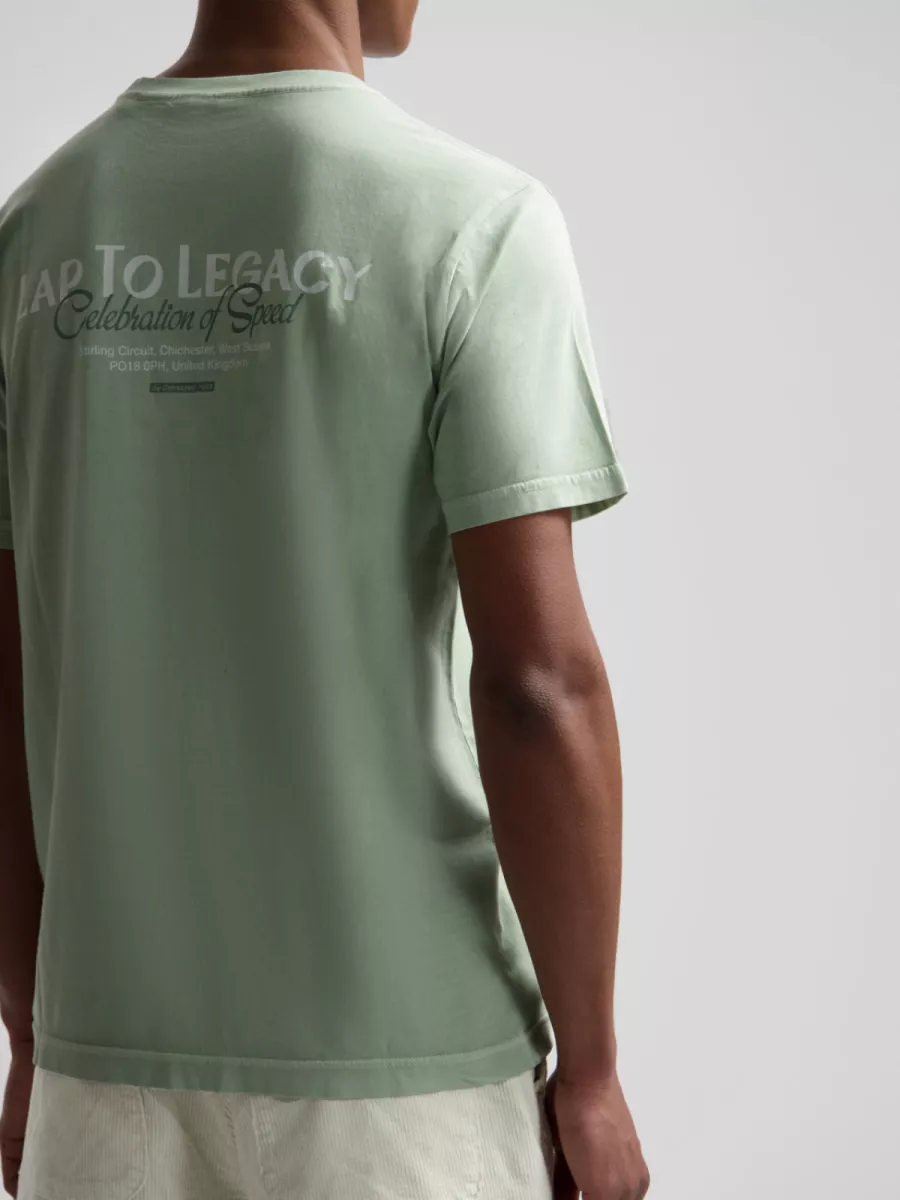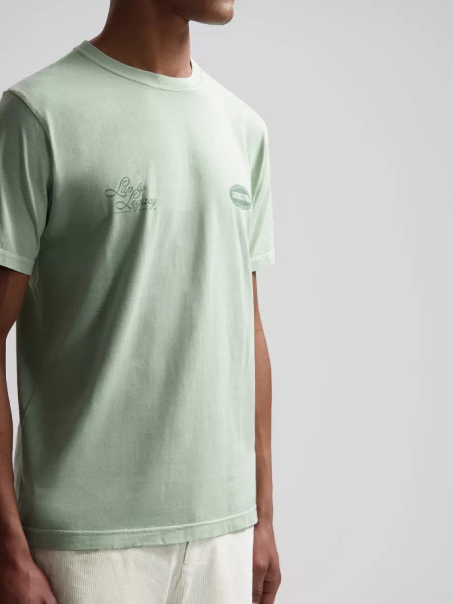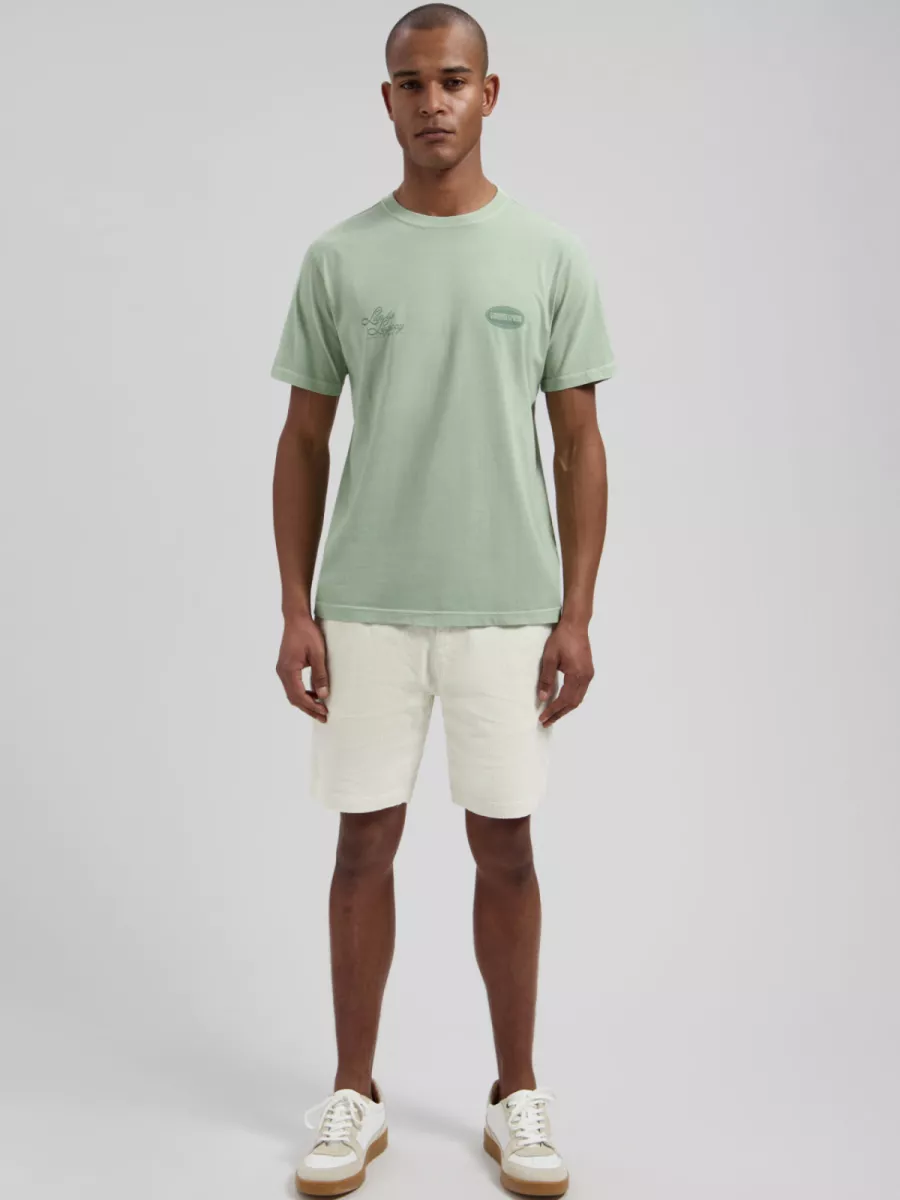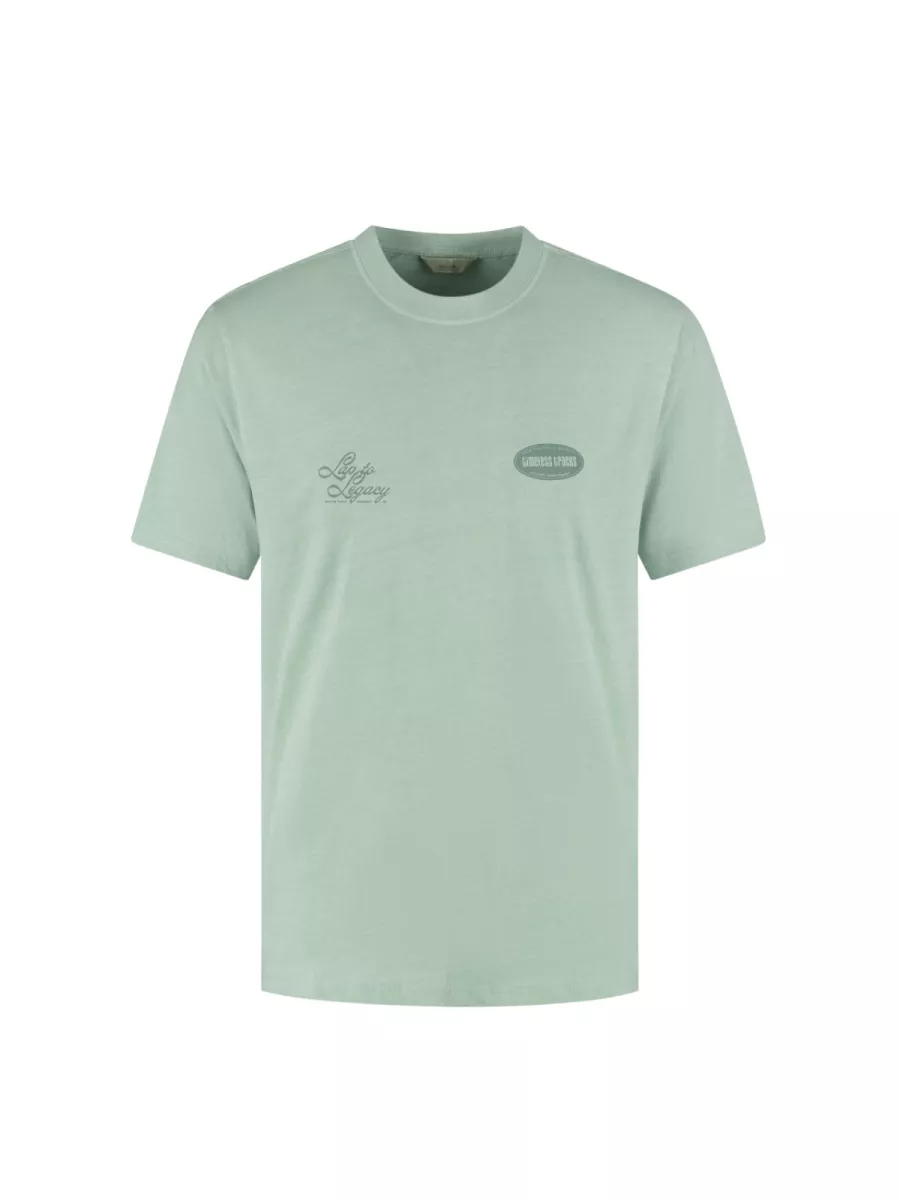 Dit T-shirt van Dstrezzed heeft een gedempte mintgroene kleur met een tonal grafische print op de borst bestaande uit een handgeschreven logo en een ovaal embleem met de tekst “Timeless Tracks”. De relaxed fit en het ronde halsboord geven hem een ontspannen karakter dat past bij een casual dagelijkse outfit. De kleur combineert goed met beige, kaki en gebroken witte tinten. Het katoenen materiaal draagt zacht en comfortabel. Een eenvoudig maar goed uitgewerkt T-shirt met net iets meer detaillering dan een blanco basisshirt.