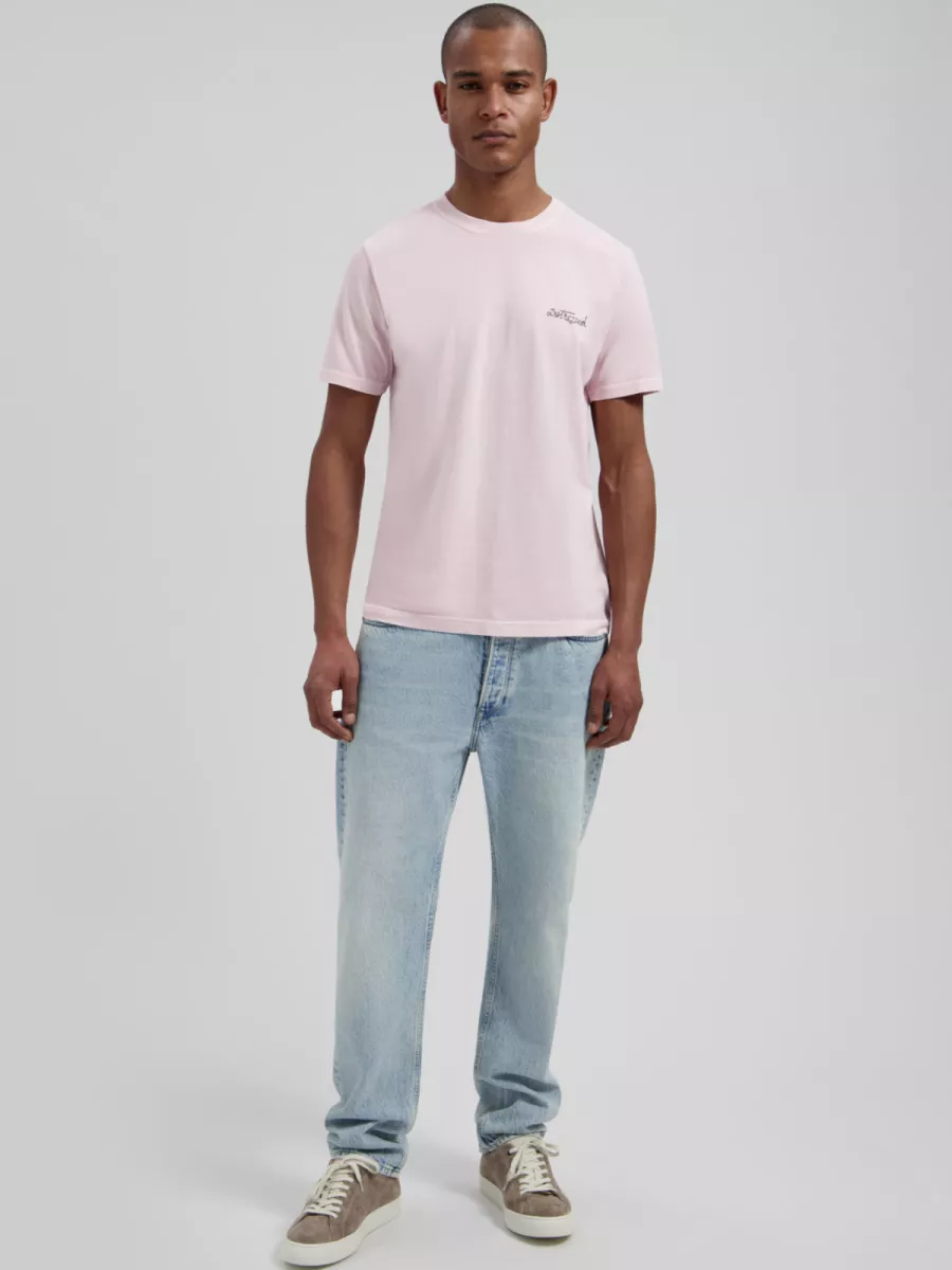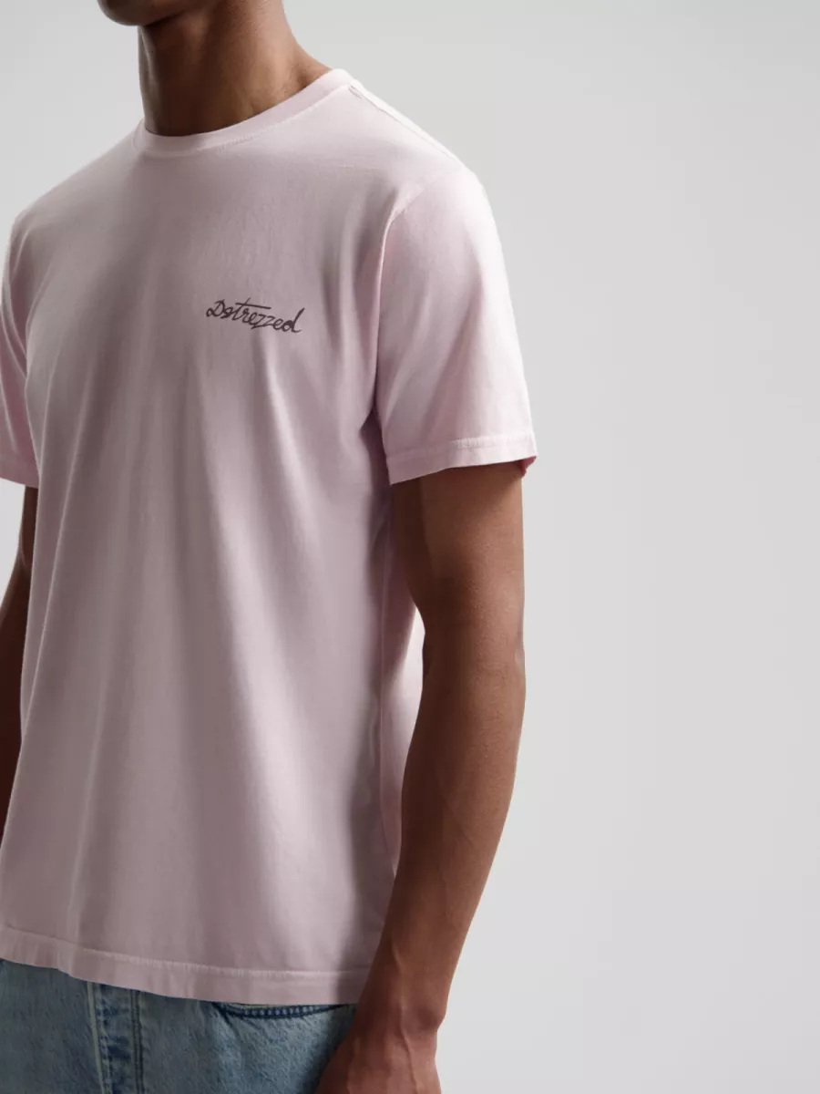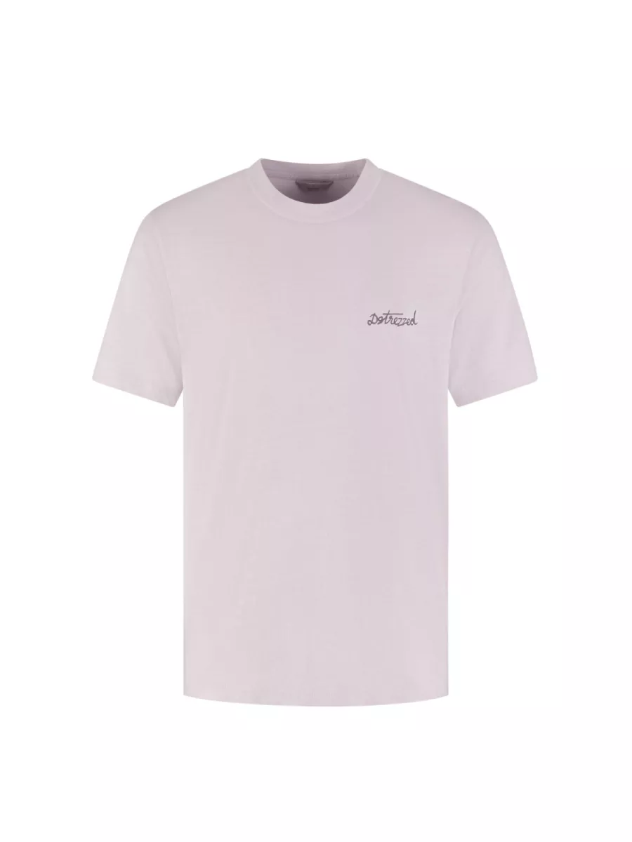 Dit T-shirt van Dstrezzed heeft een zachte lila-roze kleur met een geborduurd handgeschreven Dstrezzed-logo op de borst. De relaxed fit en het ronde halsboord geven hem een ontspannen, dagelijks karakter. De lila-roze tint combineert goed met neutrale tinten als beige, grijs of wit. Het katoenen materiaal is zacht en draagt comfortabel. Draag hem met een lichte jeans of chino voor een frisse, eigentijdse look.