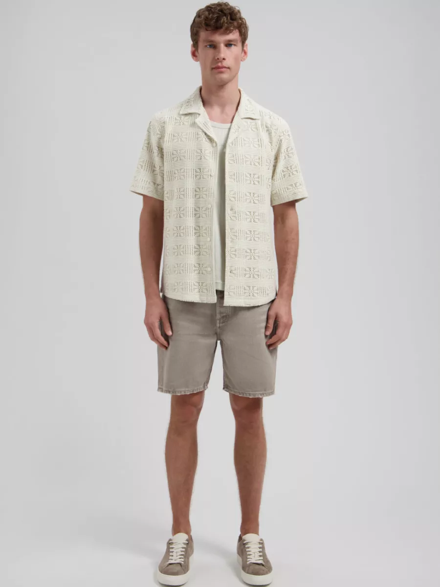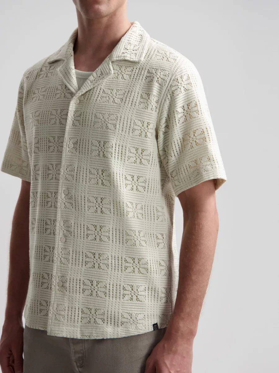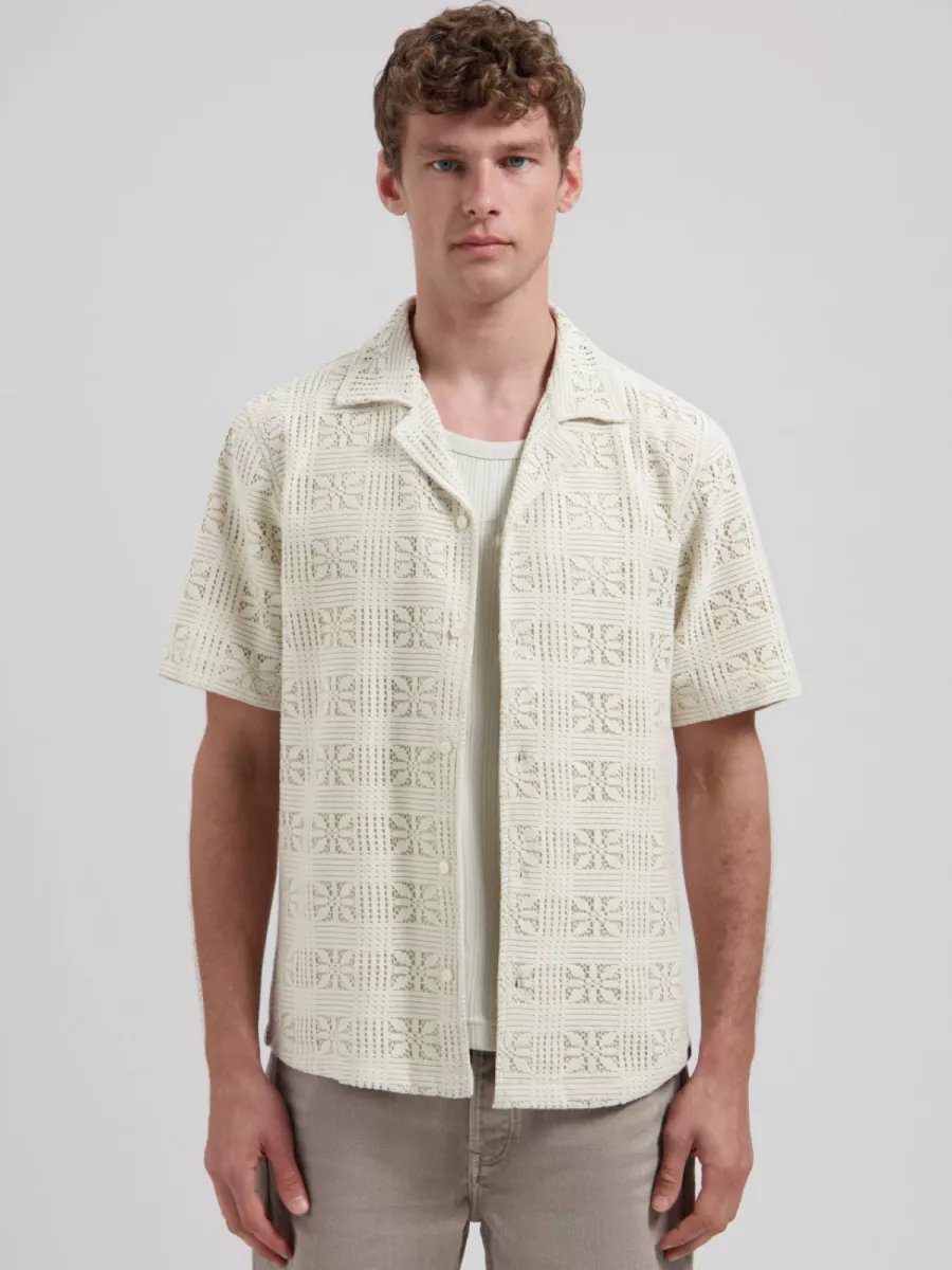 - Regular fit vest met korte mouwen, Cubaanse kraag, knoopsluiting en open haakwerkstructuur
