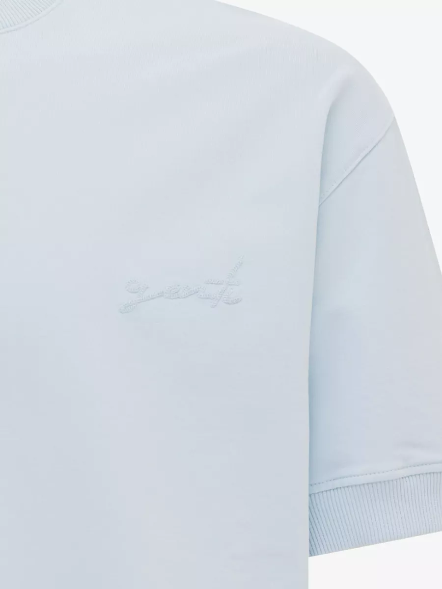 Dit lichtblauwe t-shirt van Genti heeft een strak en clean design met een subtiel geborduurd logo op de linkerborst. De iets verhoogde ronde hals geeft het shirt een nette, eigentijdse uitstraling. De licht getailleerde pasvorm sluit aan op het lichaam zonder te strak te zijn en zorgt voor een verzorgd silhouet. Het zachte piqué-achtige materiaal voelt comfortabel aan en behoudt zijn vorm goed. Lichtblauw is een frisse zomerkleur die goed combineert met wit, navy of een lichte chino. Gemaakt van 96% katoen en 4% elastaan.