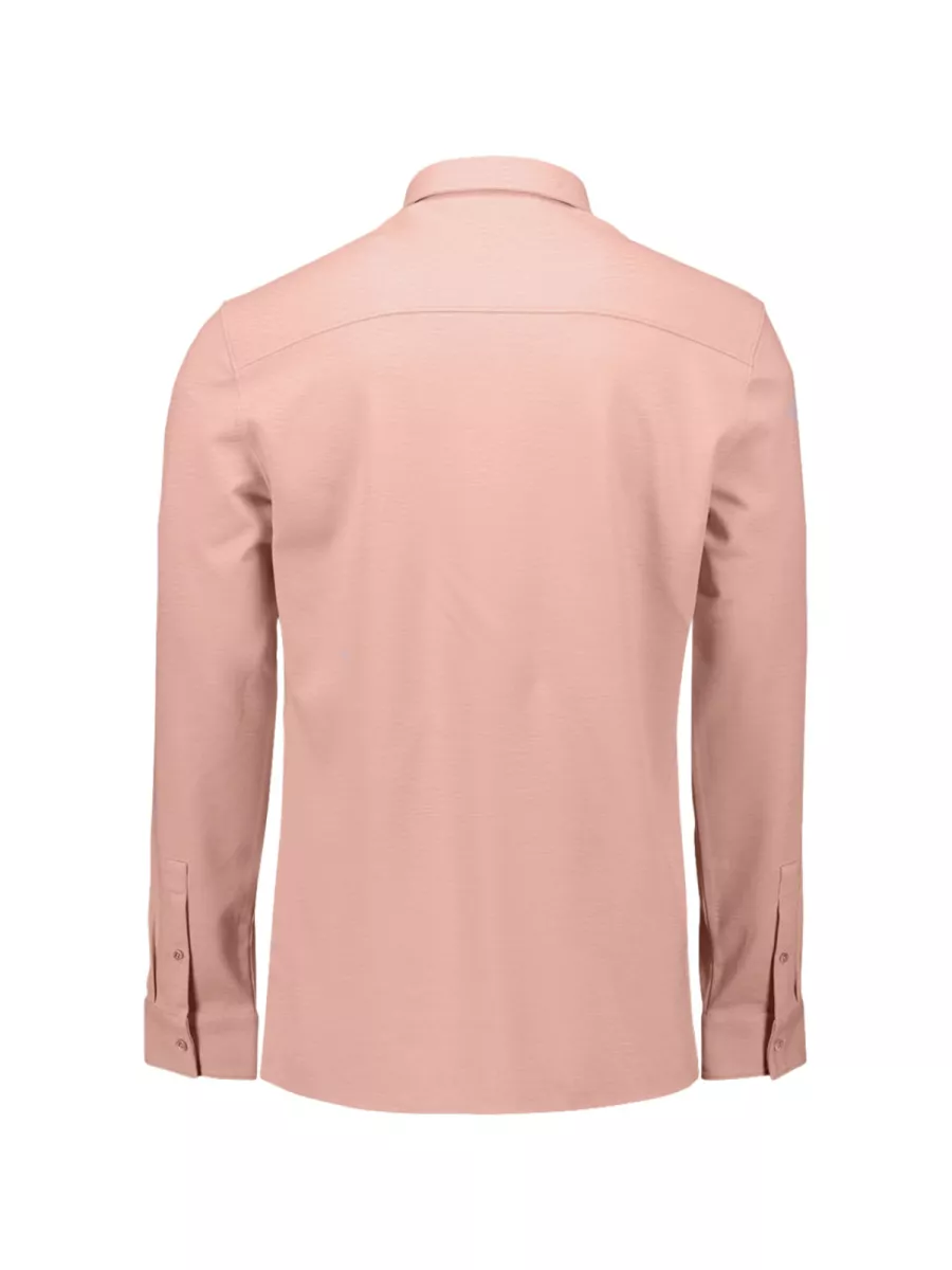 Dit roze heren overhemd heeft een licht gestructureerde stof met een subtiele textuur die het stuk meer diepte geeft dan een glad overhemd. Het sluit met knopen en heeft een klassieke hemdkraag. De pasvorm is slim en de mouwen zijn afgewerkt met brede manchetten. De gedekte roze kleur geeft het overhemd een eigentijds karakter dat goed past bij een smart casual look, zowel met een nette broek als een donkere jeans. De samenstelling van 60% viscose, 35% nylon en 5% elastaan zorgt voor een soepele val, een prettige bewegingsvrijheid en een goede pasvorm gedurende de dag.