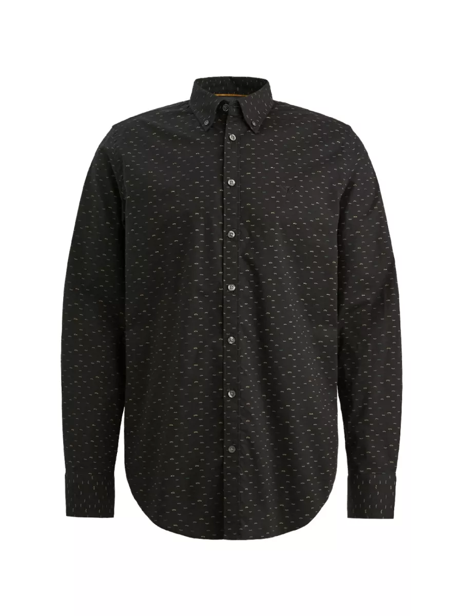 Kies voor een unieke look met dit zwarte overhemd met print van PME Legend. Het shirt is gemaakt van een gladde poplin kwaliteit waaraan stretch is toegevoegd, wat zorgt voor een ongekend draagcomfort en een mooie aansluitende pasvorm. De allover print van kleine symbooltjes geeft een speels effect aan de donkere ondergrond, ideaal voor als je eens iets anders wilt dan een effen overhemd. De button-down kraag zorgt ervoor dat het boordje altijd netjes op zijn plek blijft zitten, wat het shirt ook geschikt maakt voor onder een colbert of trui. Een perfect item voor een avond uit of een casual werkdag.