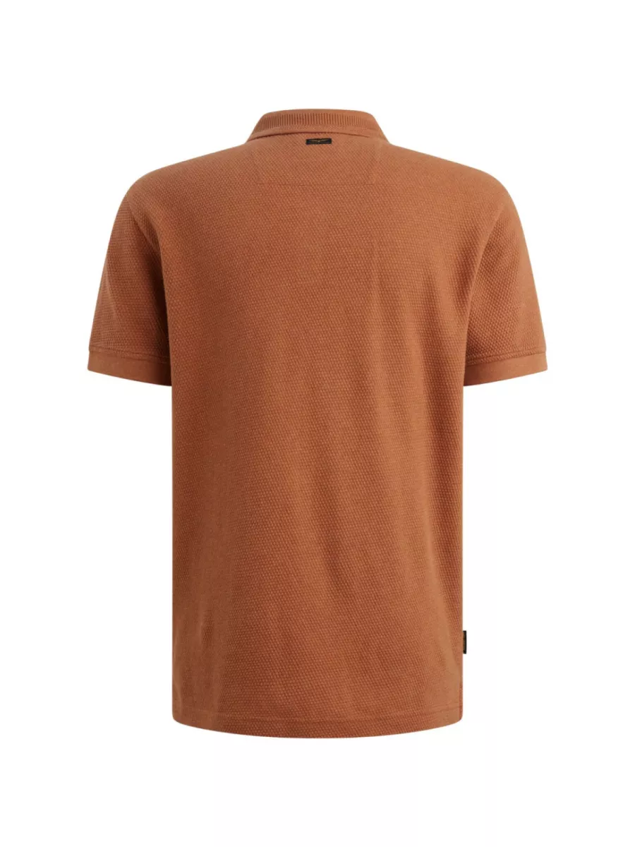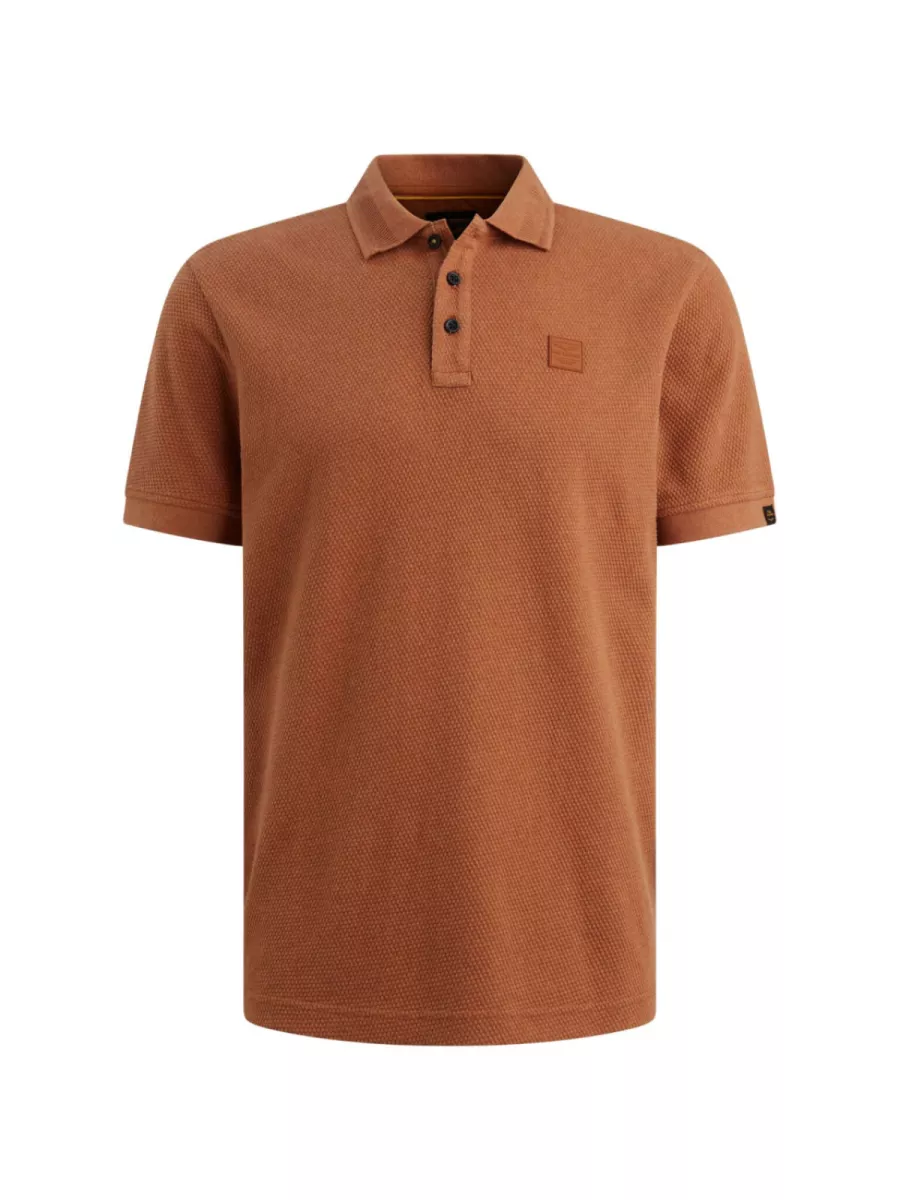 Deze oranje heren polo heeft een klassieke polokraag met een knoopsluiting van twee donkere knopen. Op de linkerborst is het logo van PME Legend bevestigd als zwart-gouden rechthoekig badge. Op de linkermouw is een verticale strook met ribbeltextuur aangebracht als detaillement. De pasvorm is recht en functioneel met korte mouwen. De warme oranje kleur combineert goed met donkere jeans of een kaki broek. De polo is gemaakt van 100% katoen voor een aangenaam draaggevoel.