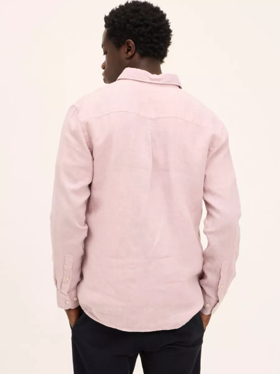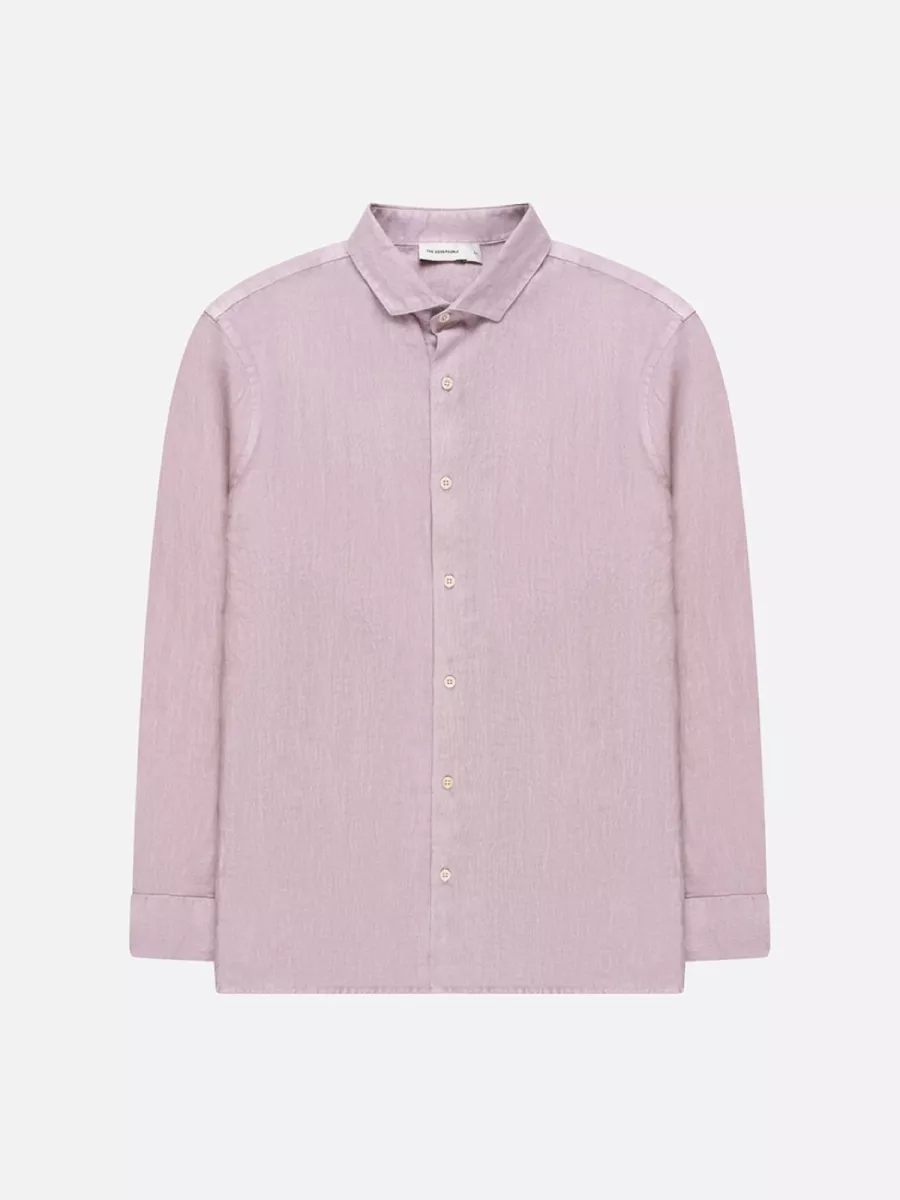 Dit roze linnen heren overhemd heeft een klassieke hemdkraag en sluit met lichtgekleurde knopen. De stof heeft de open, luchtige structuur die kenmerkend is voor linnen, wat het overhemd een ontspannen en zomers karakter geeft. De relaxte, iets ruimere pasvorm met lange mouwen en brede manchetten maakt het zowel los als licht ingestopt draagbaar. De gedempte roze kleur is zelfverzekerd genoeg om op te vallen, maar rustig genoeg om met bijna alles te combineren, van een donkere broek tot lichtblauwe jeans. Gemaakt van 100% linnen.
