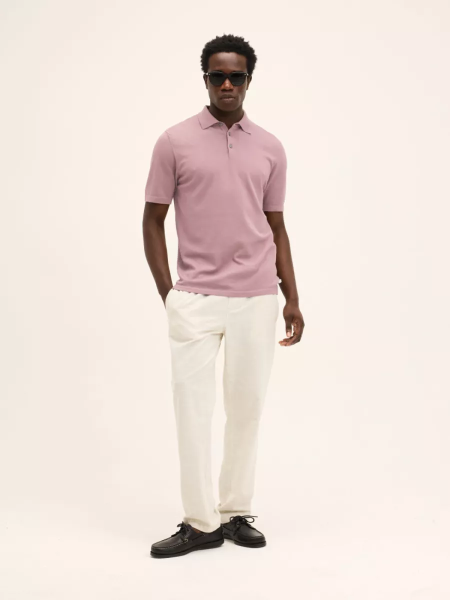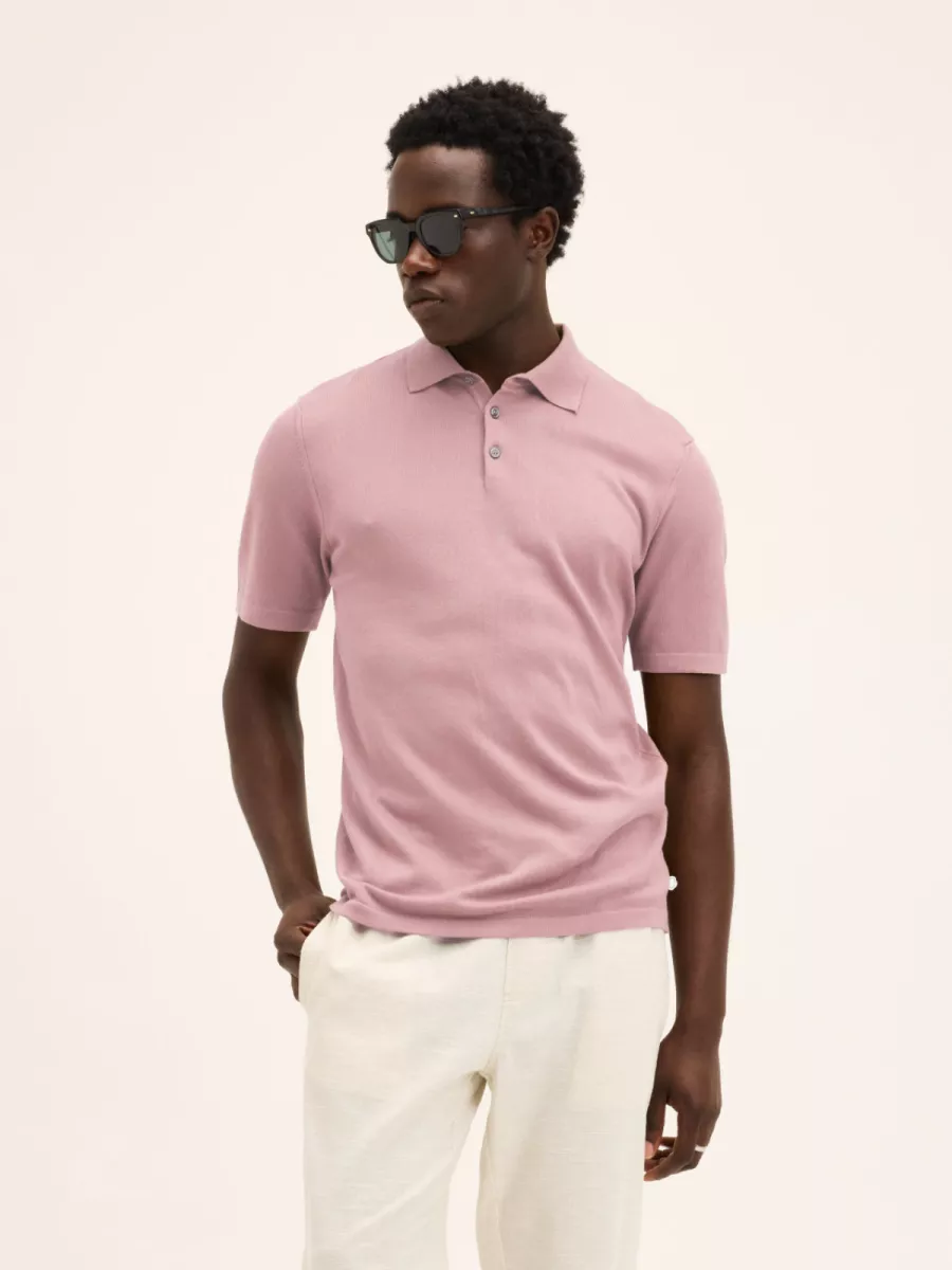 Deze roze heren polo heeft een klassieke polokraag met een knoopsluiting van twee donkere knopen. De polo is vervaardigd in een fijne gebreide kwaliteit die het stuk een netter karakter geeft dan een reguliere piqué polo. De relaxte pasvorm met korte mouwen en rechte snit draagt prettig en zonder moeite. De gedempte roze kleur is zelfverzekerd genoeg om op te vallen en combineert goed met neutrale of donkere broekskleuren. Gemaakt van 100% katoen.