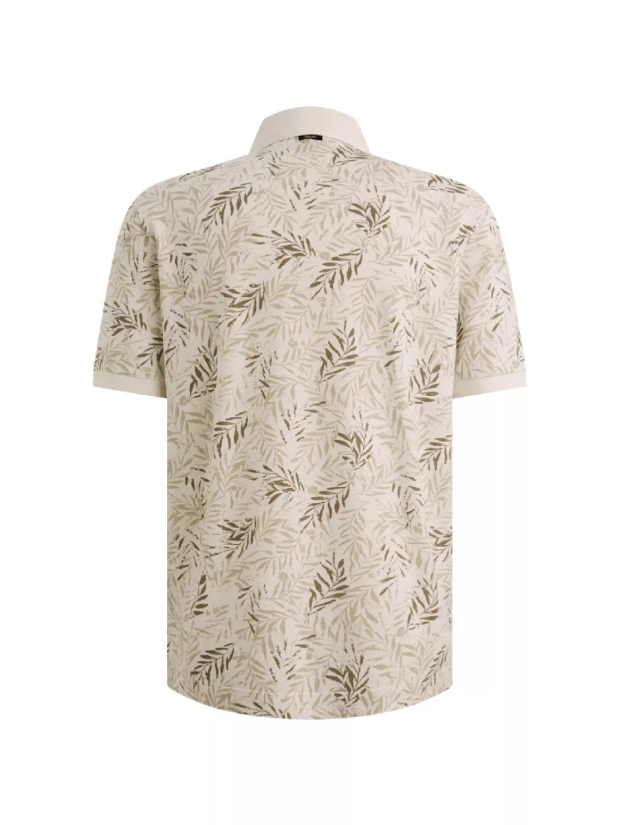 Deze beige polo onderscheidt zich door een verfijnde allover print van kleine geometrische vormen die het kledingstuk een bijzondere diepte geven. De kraag en de mouwboorden zijn uitgevoerd in een effen ribstof met een contrasterend randje langs de buitenzijde voor een verzorgd accent. De knopenlijst beschikt over drie gemêleerde knopen die perfect kleuren bij de zandkleurige ondergrond van de polo. Door de samenstelling met katoen en elastaan biedt het item een aangename stretch en een pasvorm die goed aansluit op het lichaam. Je draagt deze polo op een donkerblauwe pantalon voor een verzorgde uitstraling of op een lichte jeans voor een ontspannen dag.