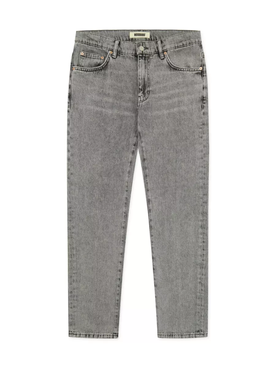 Deze grijze heren jeans heeft een verwassen wassing met een licht zout-en-peper effect door de gemêleerde denim. De jeans heeft een klassieke vijfzakkenindeling met koperen klinknagels en een knoopsluiting. Het Woodbird-label is zichtbaar aan de binnenkant van de tailleband. De rechte, iets getaperde pasvorm geeft de jeans een eigentijds silhouet dat goed combineert met zowel sneakers als schoeisel. De grijze wassing is een sterke neutrale kleur die veelzijdig inzetbaar is en een frisse afwisseling biedt op klassiek blauw denim. Gemaakt van 100% katoen.