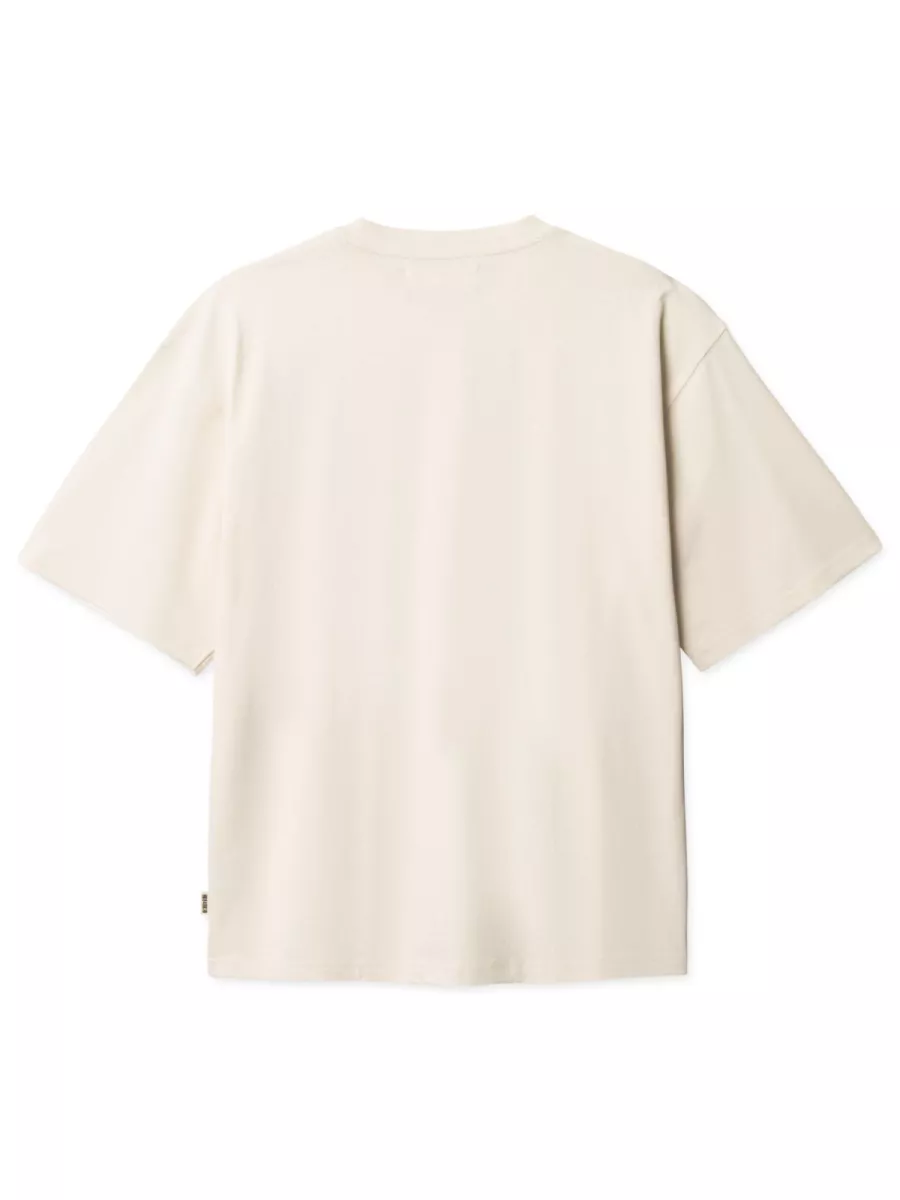 Dit off-white oversized t-shirt van Woodbird heeft hetzelfde grote logoprint op de borst als de navy variant: een gestileerd ovaal embleem met het Woodbird-woordmerk eronder, ditmaal in donkergrijs. De combinatie van off-white en het donkere logoprint geeft het shirt een rustige maar herkenbare uitstraling. De relaxte oversized pasvorm met ronde hals maakt het een comfortabele keuze voor alledag. Off-white combineert breed en is in deze uitvoering een iets zachtere keuze dan wit. Gemaakt van 100% biologisch katoen.
