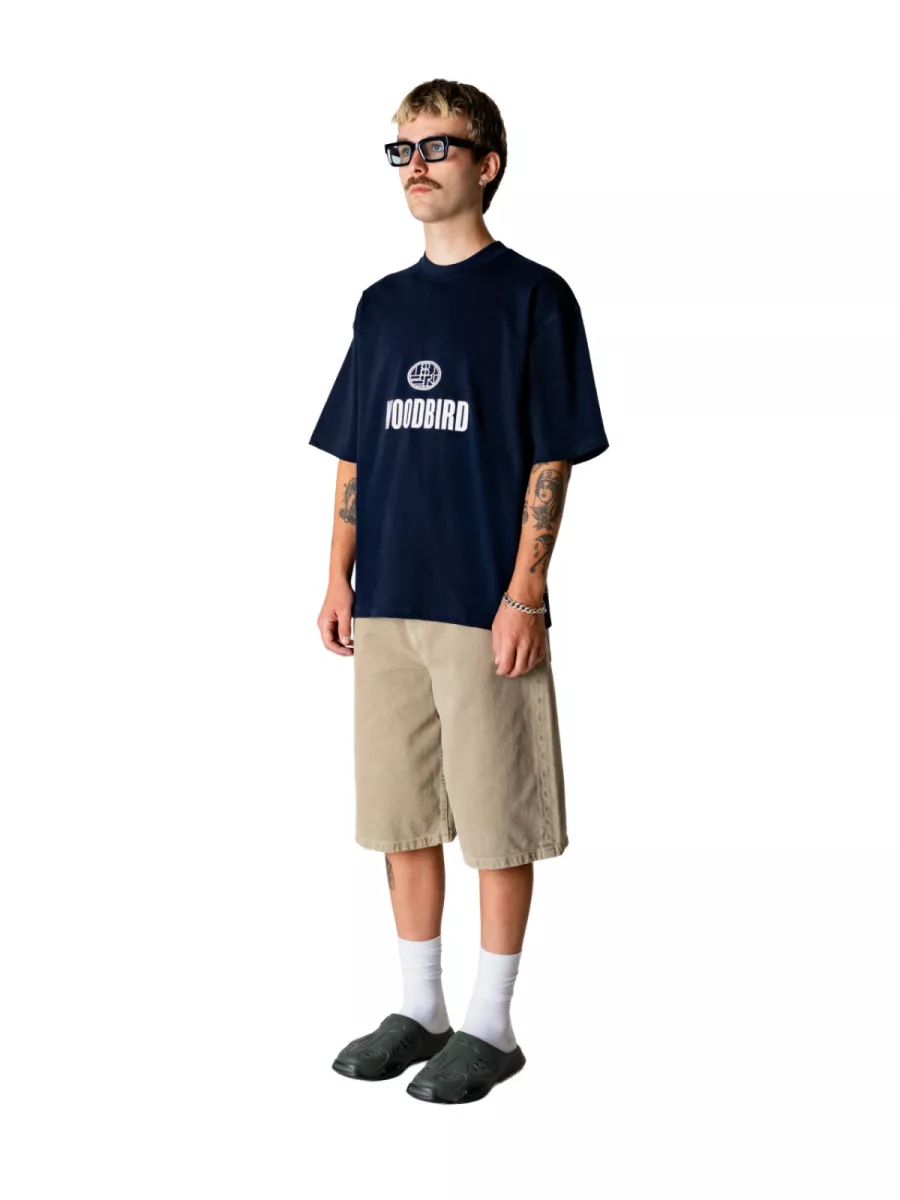Dit donkerblauwe oversized t-shirt van Woodbird heeft een groot logoprint op de borst, bestaande uit een gestileerd ovaal embleem met daaronder het woordmerk in wit. Het logoprint geeft het shirt een statement uitstraling zonder gebruik te maken van een backprint. De donkerblauwe kleur is tijdloos en veelzijdig en past goed bij vrijwel elke outfit. De relaxte oversized pasvorm met ronde hals zorgt voor een comfortabele en eigentijdse look. Een clean, directe tee voor de Woodbird-fan die de merknaam centraal wil stellen. Gemaakt van 100% biologisch katoen.